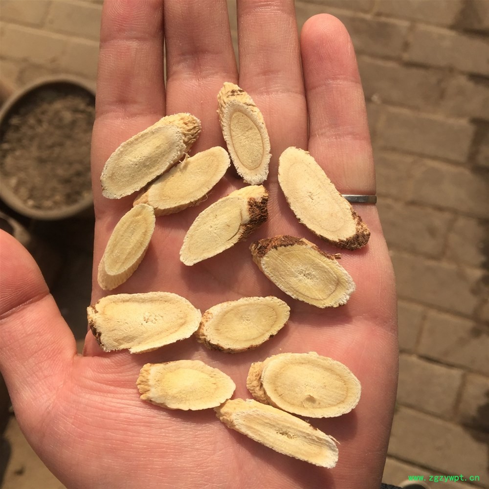 颜色性状:本品为浅黄色圆片状,表面浅黄色,断面浅黄色,味甘,性微温,归肝、脾、肺、肾经。