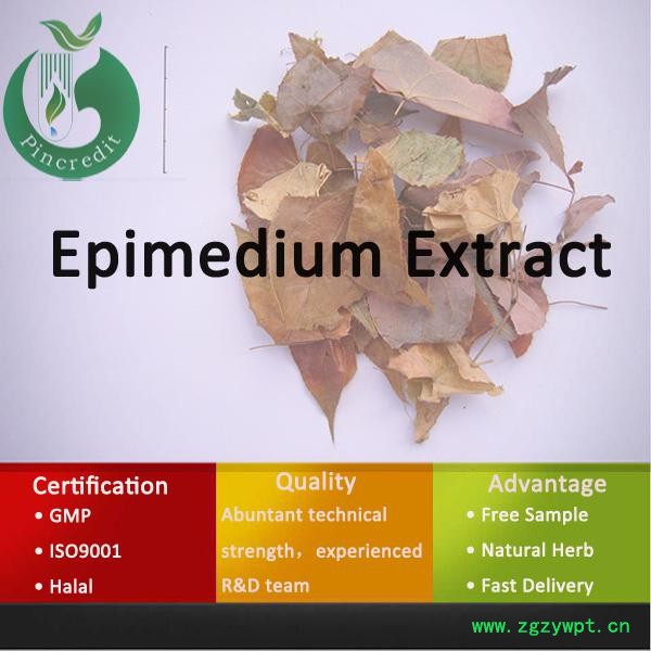 药理作用:淫羊藿提取物能增加心脑血管血流量、促进造血功能、免疫功能及骨代谢,具有补肾壮阳、抗衰老、抗肿瘤等功效。药理研究表明,已经证实淫羊藿可通过多种机制如增加精液分泌和睾丸激素产生,增强精力和性荷尔蒙产生等来提高性能力。其在中国传统医药也被用于治疗肾脏不适。现代研究确认淫羊藿通过诱导一系列免疫物质生成可增强免疫功能。此外,也有淫羊藿具刺激红血球产生和提升大脑血流功能的报道,这些功能建立了将其用于心血管疾病治疗的基础。