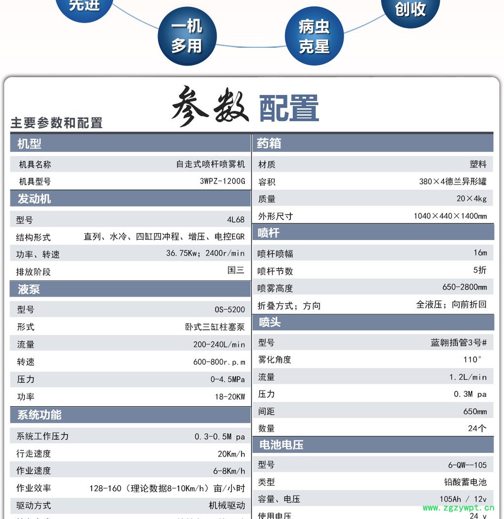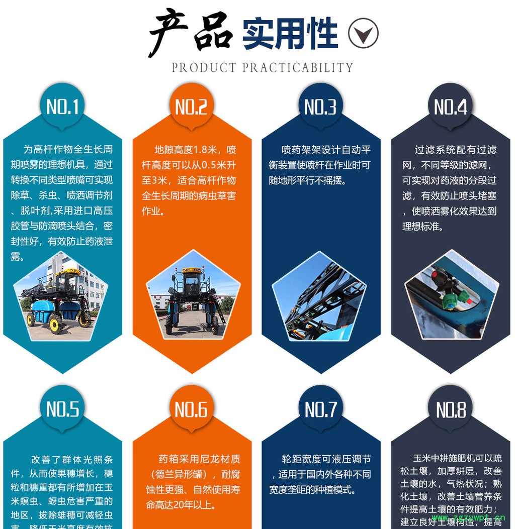 1、可实现**驱动可转换两轮驱动 2、可加装玉米切顶器 3、可加配吊喷 4、可加配玉米中耕施肥器 5、可加配轮距液压助力转移 6、可加配液晶位显示7、补贴产品!