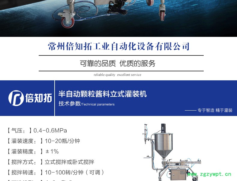 常州倍知拓工业自动化有限公司专注于灌装机的研发、生产、销售和维护,主要应用于调味品、食品、日用品等行业,特别是含有颗粒的酱类产品和高粘度产品的灌装。倍知拓在国内市场属于一颗冉冉升起的新星,本着开拓创新,提供**的产品和服务的原则,努力提高客户对我们的满意和信任。我们愿怀抱一颗赤子之心,坚持创新,完善服务,与客户携手创造高能生产力。