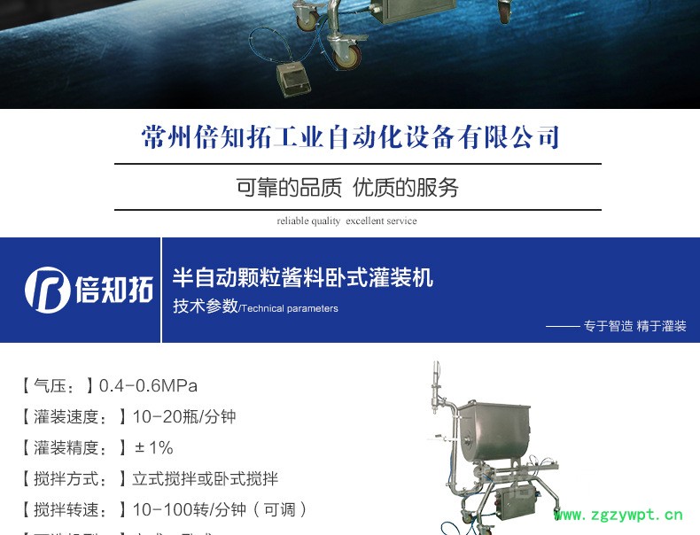 常州倍知拓工业自动化有限公司专注于灌装机的研发、生产、销售和维护,主要应用于调味品、食品、日用品等行业,特别是含有颗粒的酱类产品和高粘度产品的灌装。倍知拓在国内市场属于一颗冉冉升起的新星,本着开拓创新,提供**的产品和服务的原则,努力提高客户对我们的满意和信任。我们愿怀抱一颗赤子之心,坚持创新,完善服务,与客户携手创造高能生产力。