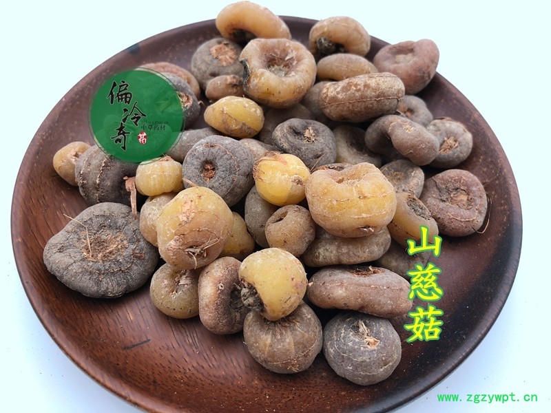 本品呈圆锥形,瓶颈状或不规则团块,直径1-2cm,高1.5-2.5cm。顶端渐尖,尖端断头处呈盘状,基部膨大且圆平,中央凹入,有1-2条环节,多偏向一侧。撞去外皮者表面黄白色,带表皮者浅棕色,光滑,有不规则皱纹。断面浅黄色,角质半透明