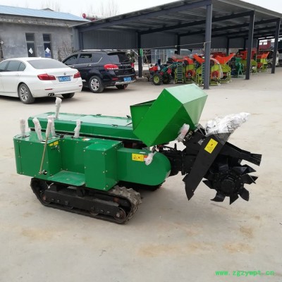 轮传动驱动开沟机工作。使用农家肥时,开沟机将土抛到沟的两侧,人工将肥料放到沟里后,可通过更换回