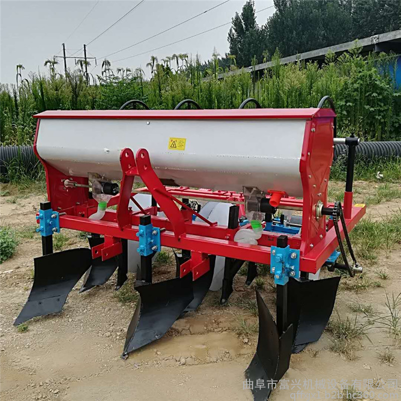 是在原来的产品基础上进一部完善,播种更准确,化肥种子同时播,适合土壤比较板结和麦茬播种,肥料种子大小多少都能进行调节,坚固耐用。播种机与手扶拖拉机牵引座连为一体,随手把能灵活升降,具有结构简单,造价低廉,操作方便等优点,是配套手扶拖拉机的一种小型播种机