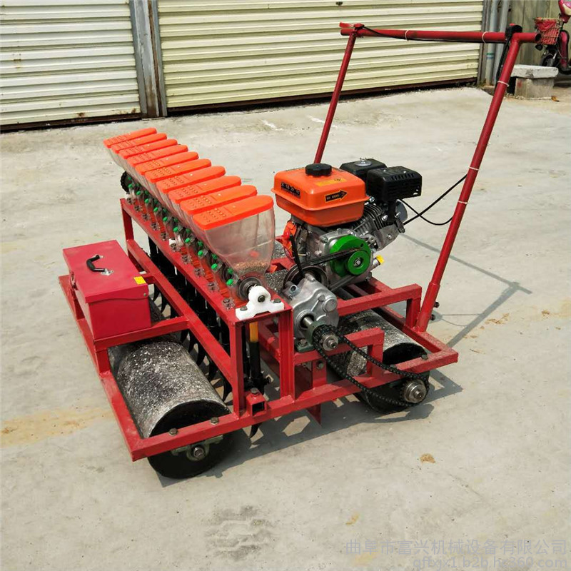 【适应作物】:谷子、芝麻、胡芥、油菜、糜子(黍)、油籽、菜籽、胡麻、辣椒、甜菜、白萝卜、水萝卜、胡萝卜、菠菜、芜菁(蔓菁)、韭菜、大葱、洋葱、白菜、芹菜、芥菜、麻类、青笋、结球甘蓝、芦笋、落葵、生菜、雪里红、西兰花等各种花卉、苜蓿牧草、草坪、粮油、中药材、蔬菜等小颗粒种子的免间苗、省种、壮苗、增产、高效的精密播种。 另外,我们可以为客户“量身定做” 1—6行不等的大、中、小型等多行播种机。或定制高粱类中、小颗粒种子的专用播种机。其原理是:在通过本机排种控制系统对下种数量的精密控制,播种时按量定距,将种子相对有规律的单粒排放在出苗环境较好的土层。使出苗株距自然合理,减省了人工蹲下间苗的劳苦中解脱