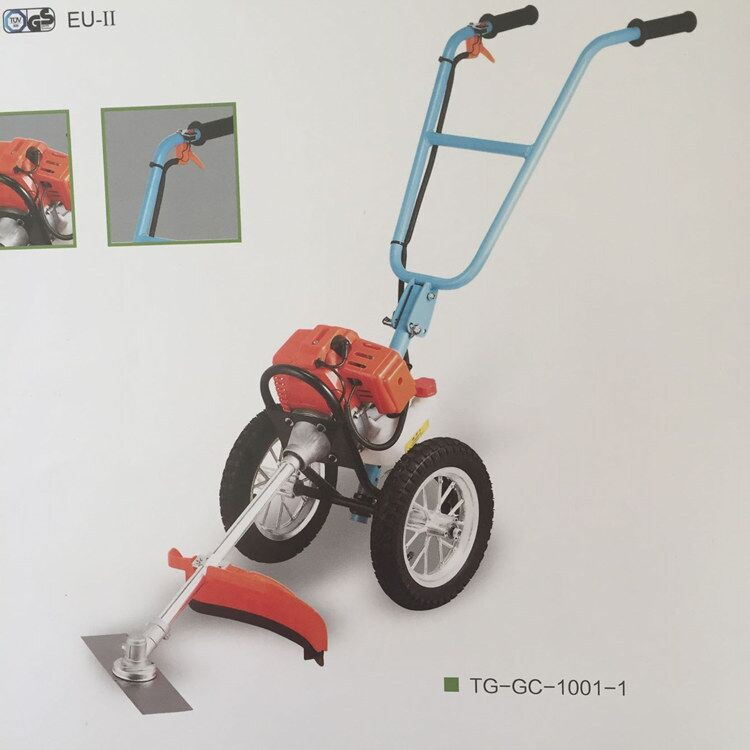3、工作时再也不用弯腰驼背,男女老少均可轻松操作使用。换上相应刀具,装上上下托板和安全的防护罩,还可收割灌木、牧草、芦苇及花圃草坪的修整。