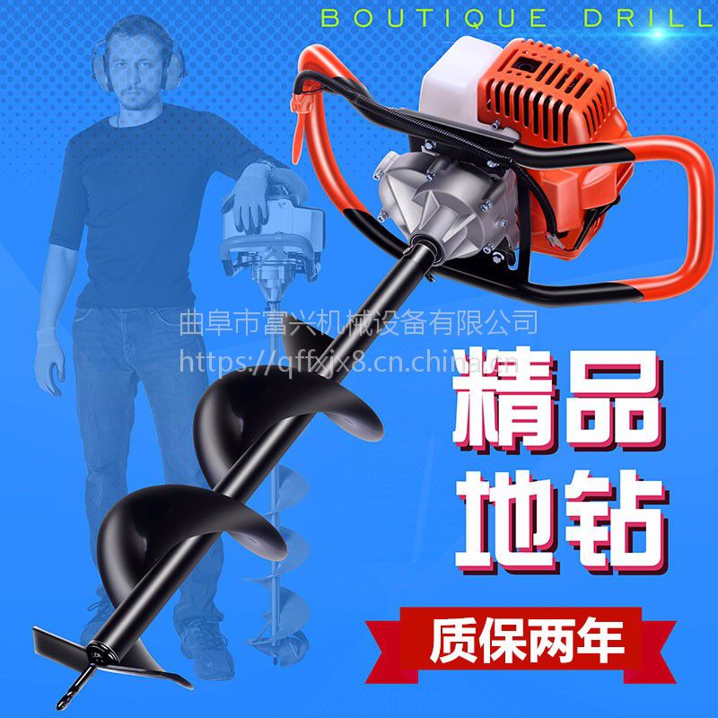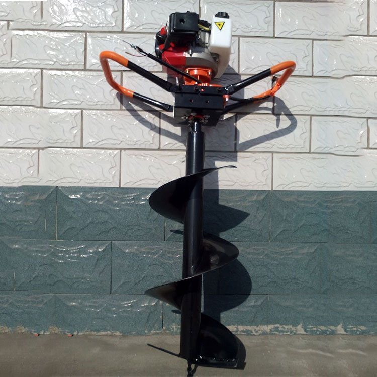 由小型通用汽油机,超越离合器,高减速比传动箱及特殊设计的钻具组成适合于<20度以下的坡地、沙地、硬质土地的植树造林或果树种植,道路两侧绿化植树等。苗木种植挖穴,畜牧围栏埋桩挖穴;葡萄胡椒种植埋桩挖穴;果树、林木施肥挖穴。挖坑直径:,200mm250 mm 300 mm 40mm。操作每小时不低于80个坑,按一天工作8小时计算,一天可以挖640个坑,是人工的30多倍。让人们从繁重的体力劳动解放出来,广泛应用于植树造林,栽种果林、篱笆、及秋季给果树施肥等。动力强劲有力,外形美观,操作舒适,劳动强度低,适合各种地形,效率高,便于携带及野外田地作业。