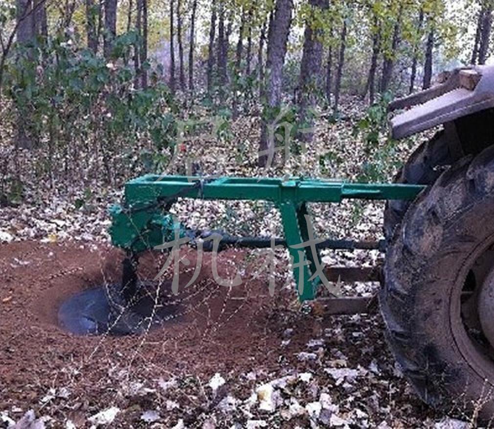 拖拉机挖坑机设计合理,结构紧凑,使用灵活,操作方便。和不同型号拖拉机配套,对植树造林、种植香蕉、柑桔、荔枝、花木等作物挖坑施肥的理想设备,使用该机挖树坑,节约了大量的人力和时间,同时增加了社会效益和经济效益。拖拉机带式植树机能让人们从繁重的体力劳动解放出来,广泛应用于植树造林,栽种果林、篱笆、及秋季给果树施肥等。动力强劲有力,外形美观,操作舒适,劳动强度低,适合各种地形,效率高,便于携带及野外田地作业。