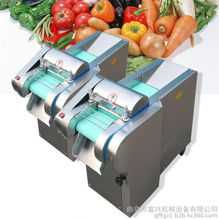 多功能型切菜机包含单切机的所有功能的同时,也可切圆形如土豆、萝卜等。 可将根、茎、叶等蔬菜加工成片、丝、丁、菱、曲线、花丁、花片等。切片装置用于硬菜(萝卜、土豆、水果、薯类)的切片,厚度在1-10毫米内自由调整;往复竖刀将刀成的菜片或软菜(韭菜、芹菜)切成直丝或段、曲线丝、方丁(或形刀)输送带每次移动距离1-20毫米自由调整。所调整量即为丝段的宽度;应注意被切菜直径较粗时(大于30毫米)出片效果才好,便于切丁,直径小时制的片或丁将会杂乱。被切菜加工面平整光滑、规则,组织完好,保持手工切制的效果。具有外形美观,操作简单,使用维修方便等特点。可切香葱、香菜、菠菜、韭菜、韭蒜、芹菜、豆角等茎杆茎叶物料段形,也可以切海带、荷叶、烟草成丝状,宽度自由调节。