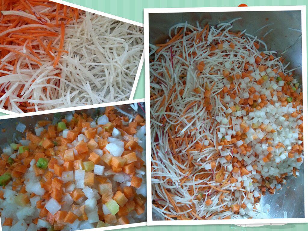 3、胡萝卜、白萝卜等切片、切丝、标准段长丝。