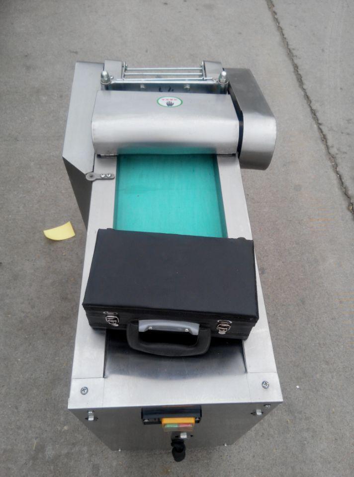 本机模拟手工切菜,切丝,切段等原理,采用电机皮带变速方式实现高低运转。可以高效能的完成2-25mm切丝需求,料头的离心式切片构造可以完成硬质瓜果蔬菜等的切片功能。传送带装置可以将料头的产物直接输送到刀架下。通过不同的刀片将片,叶,根,茎等蔬菜或其他制品加工成片,丝,丁,块,条等多种形状。更多功能请买家自己体验! 使用方法: 1.将机器放置在水平的工作场地上,确保机器下边四脚平稳,可靠,不晃动.仔细检查旋筒内有无杂物,如有异物清理干净,以免引起机器损坏.对各部件进行检滴油.紧固件是否使用中松动,开关线路是否破损. 2.为确保安全,必须在接地标记处可靠接地,电源接头必须安装漏电保护器!!! 3.机器工作时,严禁将手伸入机器内,在加工过程中勿用湿手按开关。 4.在进行清理拆卸前,首先断开电源,使机器停止运转。 5.轴承每3个月更换1次钙基润滑脂。 6.在使用过程中,若出现异常情况,应迅速关闭电源开关,待故障排除后重新启动,使之正常工作