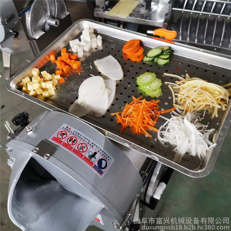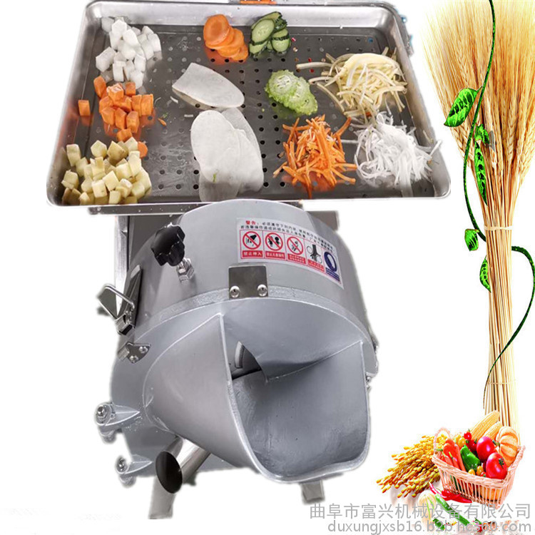 本机是模拟手工切菜原理,采用无极调速,无极调节机构适应1--30mm切丝需要。离心式切片机构完成各种硬菜切片,自动输送到竖刀下切丝或切块。广泛适用于硬、软各种根、茎、叶类蔬菜和海带的加工,可切制片、块、丝、丁、菱形、曲线形多种花样。是蔬菜脱水、速冻、保鲜、腌渍等食品行业及厂矿、企业、机关、学校、部队等单位的食堂及宾馆、饭店蔬菜加工的理想设备。 ,具有外形美观,操作简单,调整轻松,维护方便, ,噪音小,高产高效等特点,工作效率高,切片厚度在1-3mm,切丝切段宽度在1-25mm,能不同程度的替代人工切片切丝切段,切出的产品整齐,厚薄均匀,质量远远超过手工,适用于硬、软各种根、茎、叶类蔬菜和海带的加工,可切制片、块、丝、丁、等多种花样。是蔬菜脱水、速冻、保鲜、腌渍等食品行业及厂矿、企业、机关、学校、部队等单位的食堂及宾馆、饭店蔬菜加工设备。