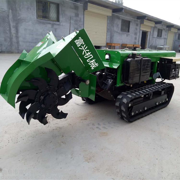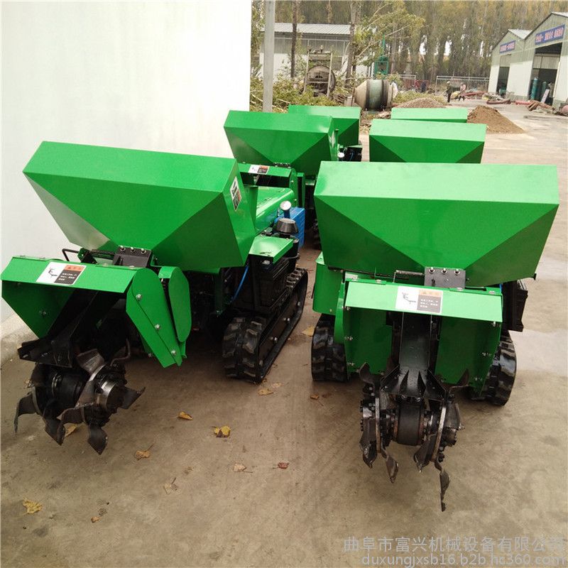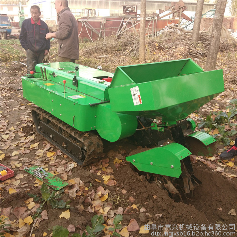 多功能履带式开沟施肥机可以实现大型机械无法进入的果园、小块土地、大棚、茶园、丘陵、山地等不同的地形和土质进行作业。
