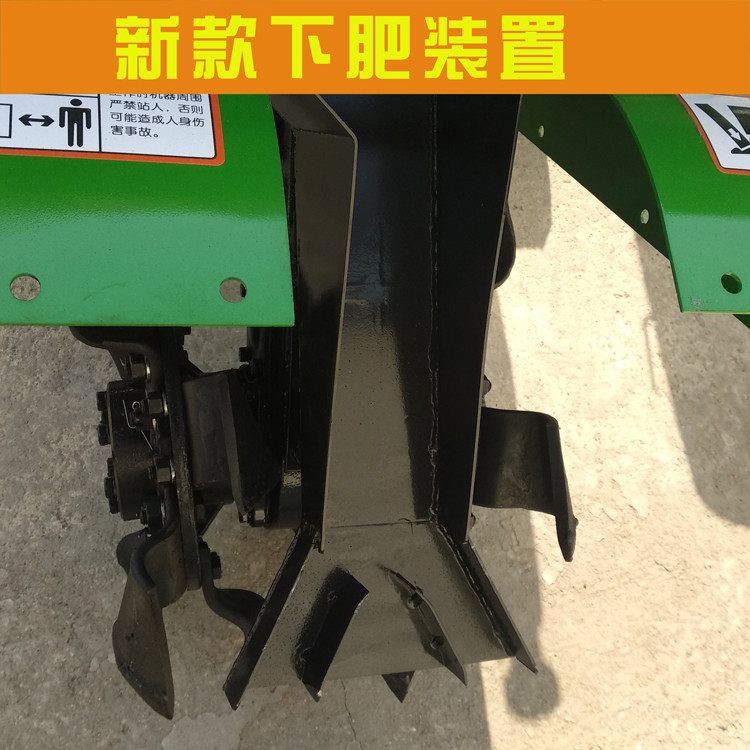 轮传动驱动开沟机工作。使用农家肥时,开沟机将土抛到沟的两侧,人工将肥料放到沟里后,可通过更换回