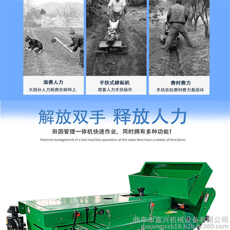 自走式培土机 轻便小型开沟机 田园管理机田园管理机该产品,质量精良、操作简单、配套农机具齐全,适用范围广,成其在果园、大棚、梯田、坡地等地域作业以及在棉花、玉米。甘蔗、大葱、葡萄、苗木等经济作物的中耕。种姜、出姜、土豆挖掘,更能发挥,独到之处,其体积小、力量大、用途广泛,具有其它类似产品无可替代的优越性。