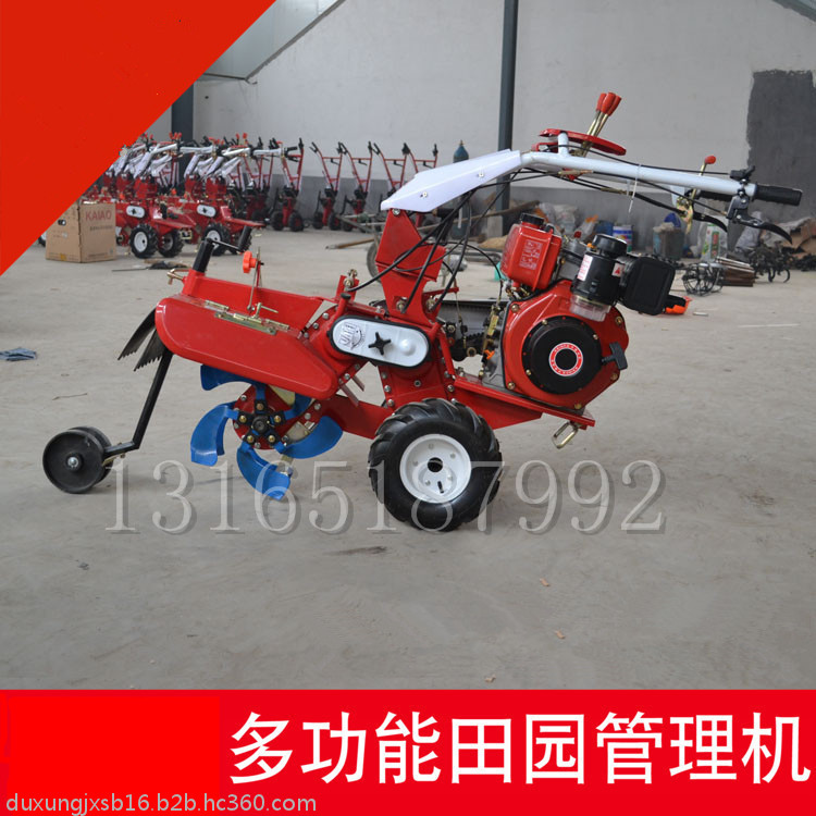 结构紧凑、机动性强、操纵轻便灵活的特点。可爬坡、越埂、阶梯性强。广泛适用于平原、山区、丘陵的旱地、水田、果园、菜地、烟地的深旋耕、浅旋耕、犁耕。配上相应机具可进行旱地旋耕、水田旋耕、抽水、开沟、喷淋、喷药除草碎土等作业,还可牵引拖车进行短途运输,是大中型农机无法**的多功能田园管理机,工作稳定可靠、使用寿命长、维修方便等特点。是进入农民家庭理想的田园管理机。