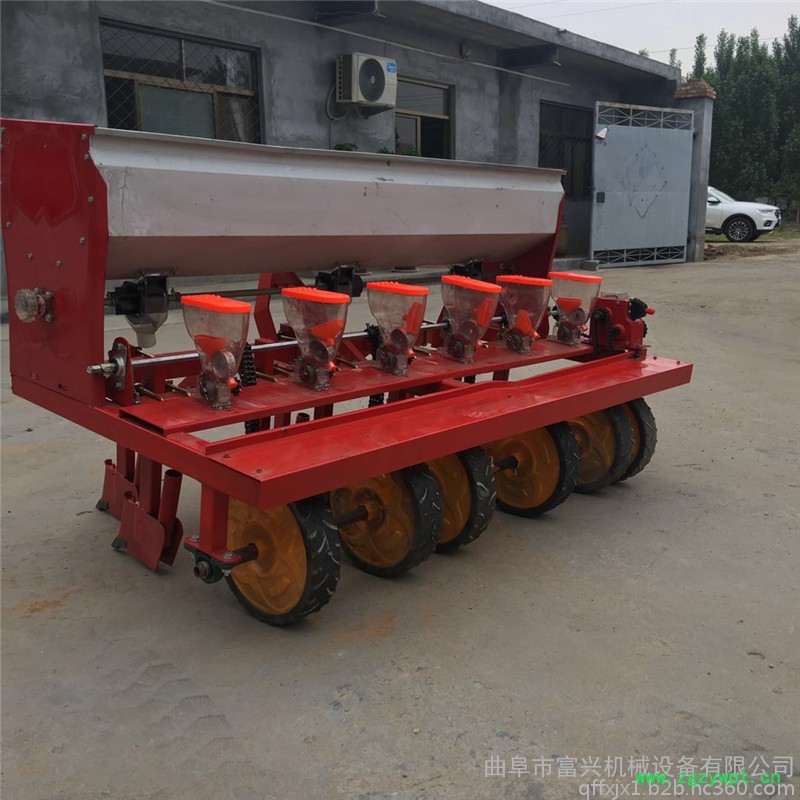 是在原来的产品基础上进一部完善,播种更准确,化肥种子同时播,适合土壤比较板结和麦茬播种,肥料种子大小多少都能进行调节,坚固耐用。播种机与手扶拖拉机牵引座连为一体,随手把能灵活升降,具有结构简单,造价低廉,操作方便等优点,是配套手扶拖拉机的一种小型播种机