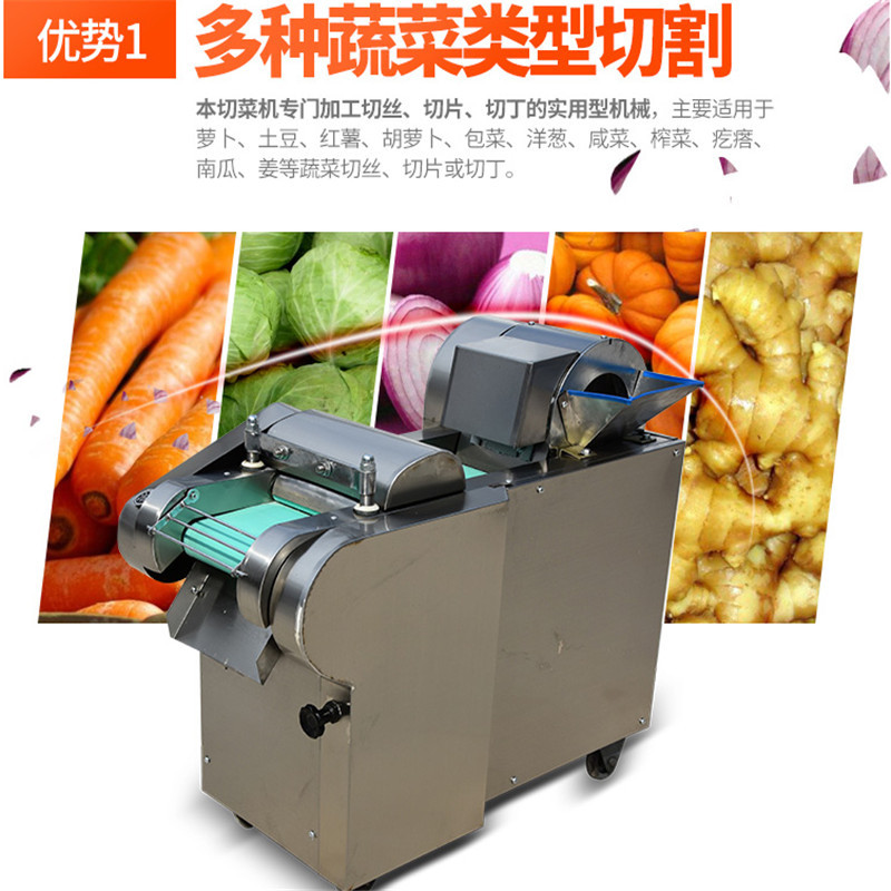 2、本机适用于硬、软各种根、茎、叶类蔬菜和海带的加工,可切制成片、块、丝、丁、菱形、曲线形多种花样。