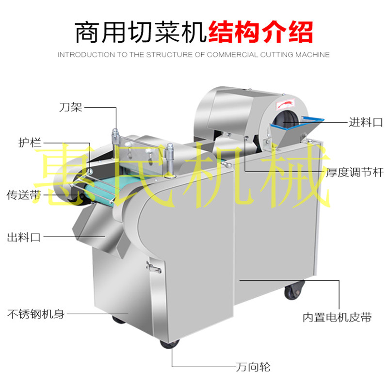 使用操作1、工作前先试切,观察所切蔬菜规格与要求规格是否一致,否则应调节切片厚度或切菜长度,符合要求后进行正常工作。