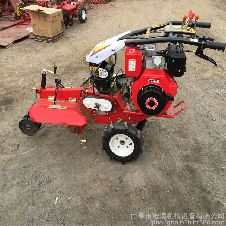 开沟培土机采用手扶式,可自由旋转360度,上下180度调节,配套机具多样,设计巧妙,操作灵活方便。
