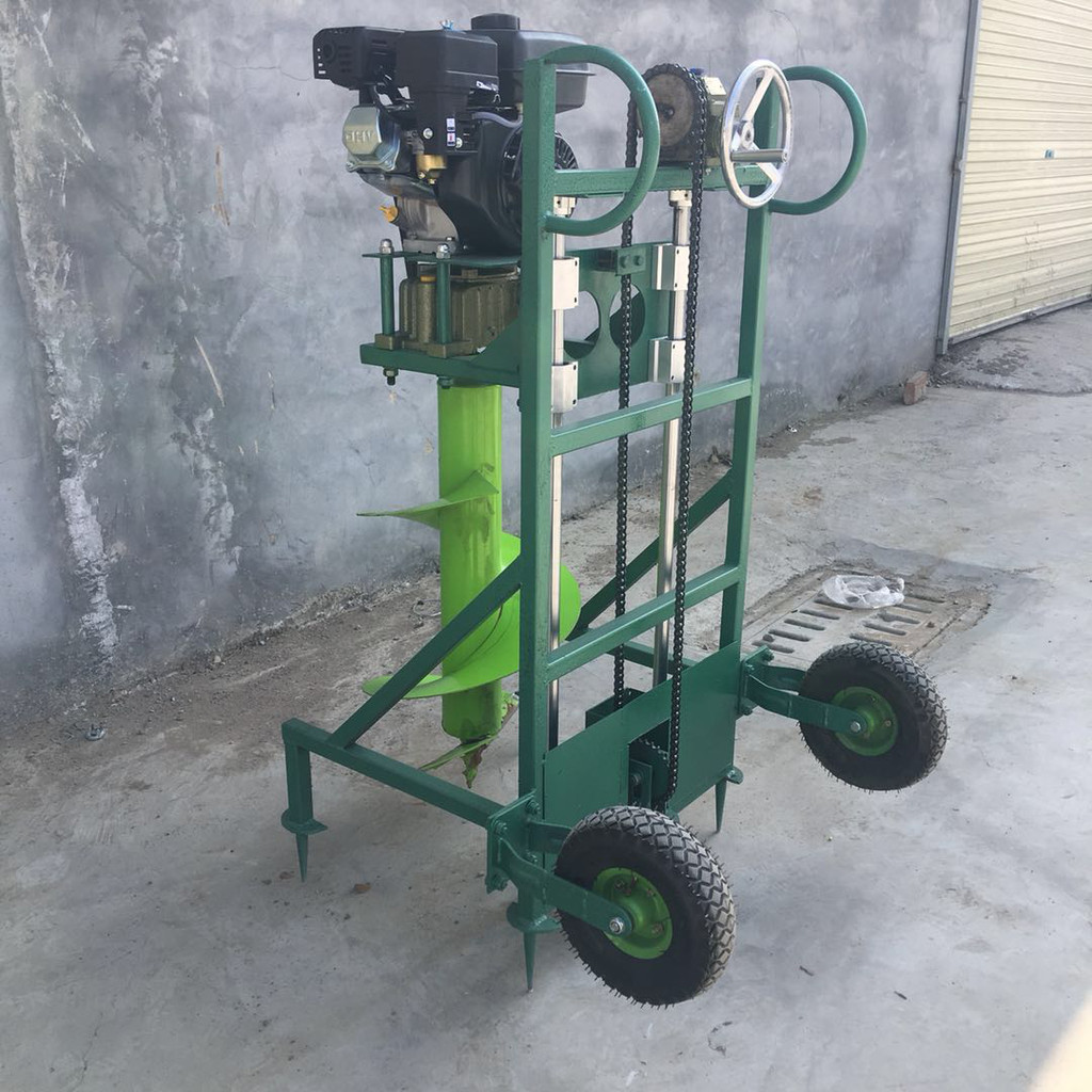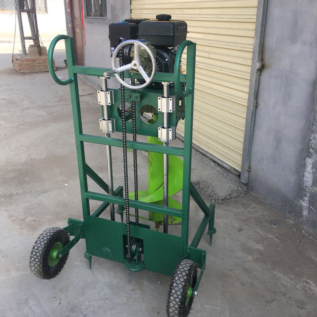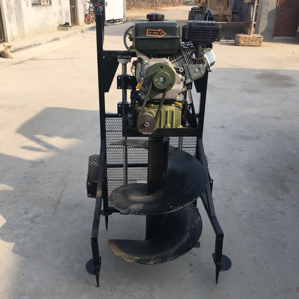 启动发动机,手握操作杆,加大油门,提高发动机转速下按操作杆,同时也可以用脚踩踏板,下压至**低点,然后松开脚,向上抬操作杆,在滑杆上两条压力弹簧共同作用下,机座回升到初始位置,油门推回怠速位置工作结束。安全可靠,性能优异,本机滑杆上装有压力弹簧辅助人力起升钻头,省力、省时效率高,质量优,成本低,装有脚轮使移动轻松便捷。工作时有四脚定位锥的固定作用,消除了螺旋钻头工作时产生的强大扭力,使机器始终保持平稳状态,保证了操作人员的人身安全。