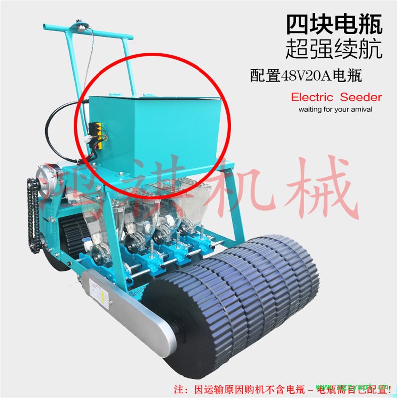 2)自带动力播种机,适合大面积作业,可在垄上播种