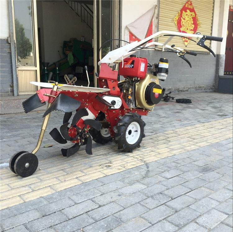 田园管理机为多用途农机具,在通用机架上换装不同的作业部件,能进行播种、中耕、培土、追肥、起垄等项作业。加装茶园用作业工具可以在茶园内施肥,松土,除草,翻地等工作,省工省时。
