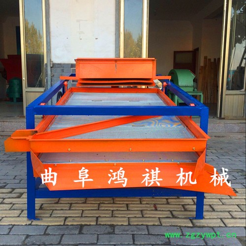 该精选筛为二层筛网,先经过进料口处风机抽风,直接抽走重量轻的杂叶或麦秸秆,上层的初次筛分在把大杂清理过,好的粮食(种子)直接落到下层晒网上,下层筛网会把粮食(种子)中的小杂。小石子,有缺陷的粮食(种子)直接漏掉,完好的粮食(种子)会从出料口筛分开出来。该小型清粮机解决了扬场机的功能单一,不能有效去除石子,土块的缺陷,更能为清理,当净选粮食(种子)带来满意的效果。该机有占地小,移动方便,便以维修,除尘除杂效率明显,能耗低,使用简便等优点。真可谓是中小型粮食清理净选筛中的战斗机!