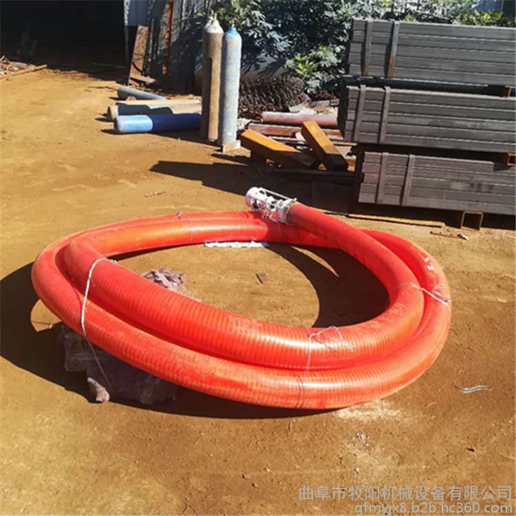 答;软螺旋是采用一种锰钢,南非进口材质,硬度弹性,耐磨性都是比较好的,而且外边缘经过特殊处理光滑,不会对管子造成伤害,管子是专门定做牛筋管,一年四季保持有弹性,可以任意弯曲。并且添加耐磨材料,延长管子寿命。