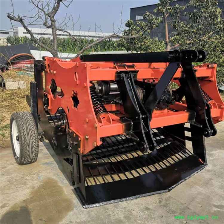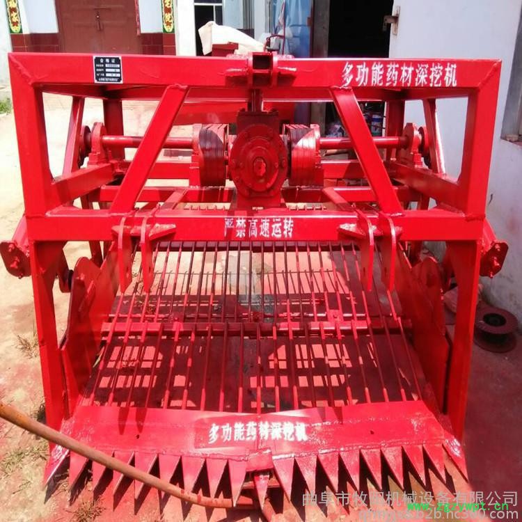 使用配套大型**拖拉机经悬挂,传动轴连接,开动机器,根据药材根茎深度调节后轮,缓慢将深铲插入土壤中。将药材根茎挖出,经振动筛振动将土筛净后,使药材传送地表面,完成采挖工作。