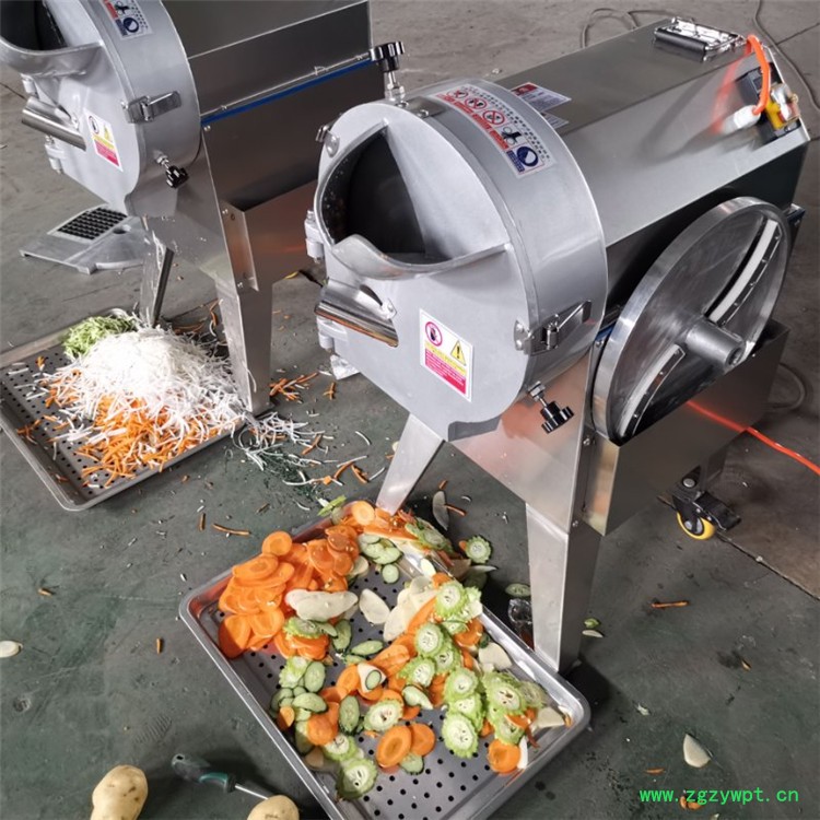 切片装置用于硬菜(萝卜、土豆、水果、薯类)的切片,厚度在1-10毫米内自由调整;往复竖刀将刀成的菜片或软菜(韭菜、芹菜)切成直丝或段、曲线丝、方丁(或形刀)输送带每次移动距离1-20毫米自由调整。所调整量即为丝段的宽度;应注意被切菜直径较粗时(大于30毫米)出片效果才好,便于切丁,直径小时制的片或丁将会杂乱。被切菜加工面平整光滑、规则,组织完好,保持手工切制的效果。具有外形美观,操作简单,使用维修方便等特点。可切香葱、香菜、菠菜、韭菜、韭蒜、芹菜、豆角等茎杆茎叶物料段形,也可以切海带、荷叶、烟草成丝状,宽度自由调节。