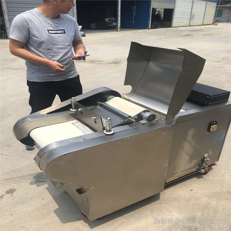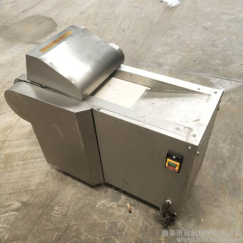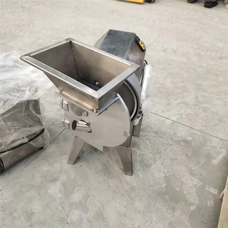 包含单切机的所以功能的同时,也可切圆形如土豆、萝卜等。可将根、茎、叶等蔬菜加工成片、丝、丁、菱、曲线、花丁、花片等。切片装置用于硬菜(萝卜、土豆、水果、薯类)的切片,厚度在1-10毫米内自由调整;往复竖刀将刀成的菜片或软菜(韭菜、芹菜)切成直丝或段、曲线丝、方丁(或形刀)输送带每次移动距离1-20毫米自由调整。所调整量即为丝段的宽度;应注意被切菜直径较粗时(大于30毫米)出片效果才好,便于切丁,直径小时制的片或丁将会杂乱。被切菜加工面平整光滑、规则,组织完好,保持手工切制的效果。