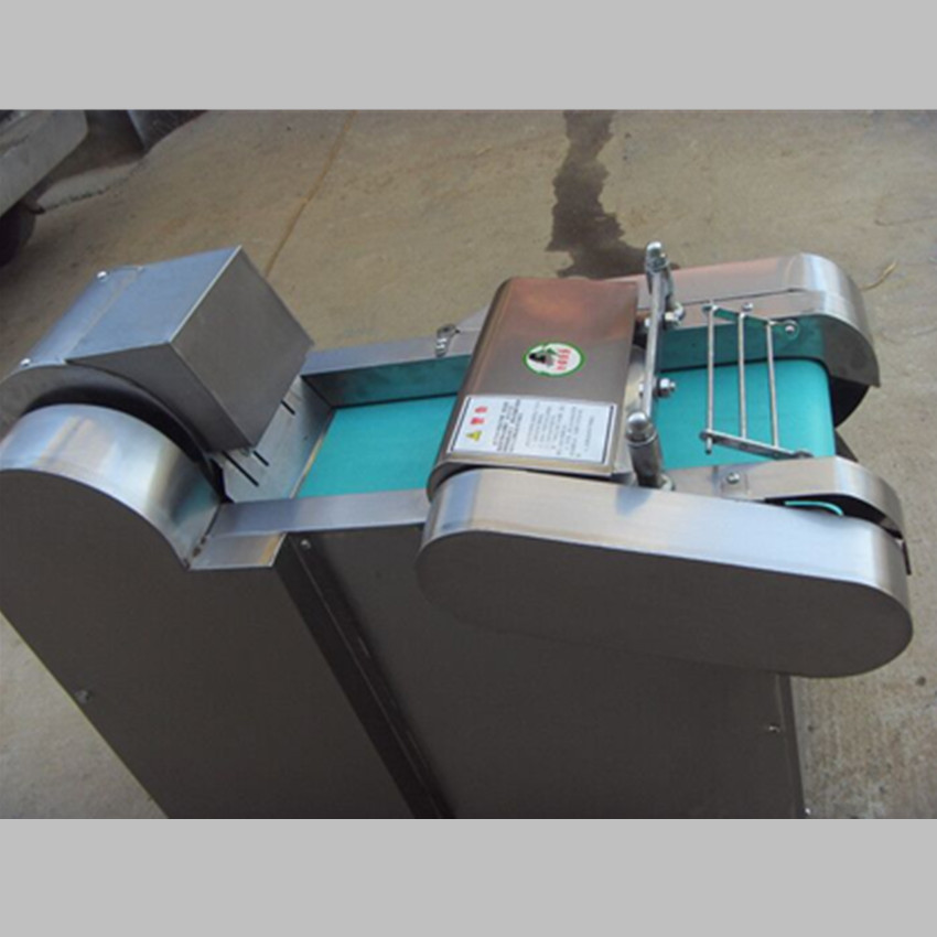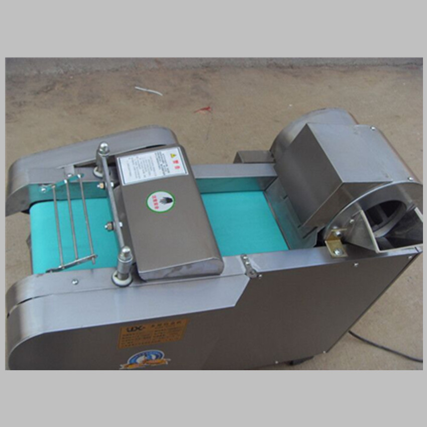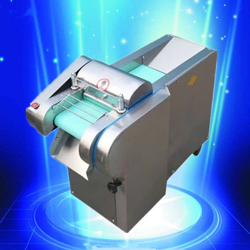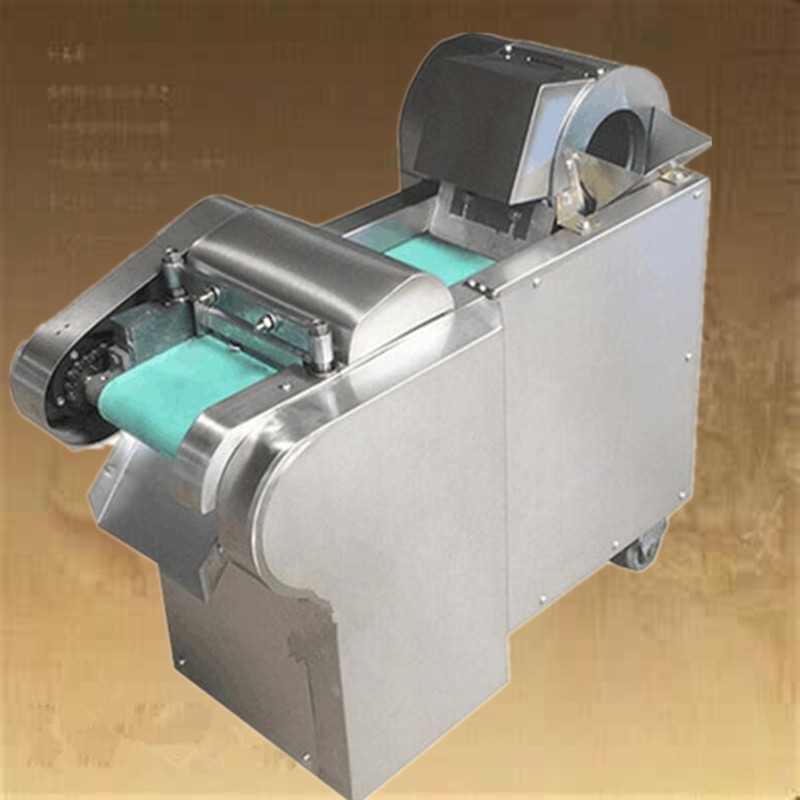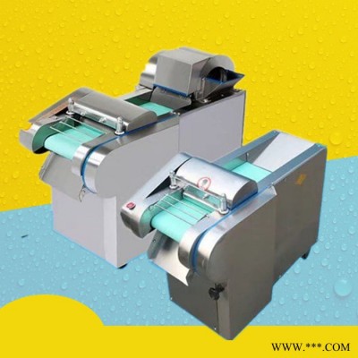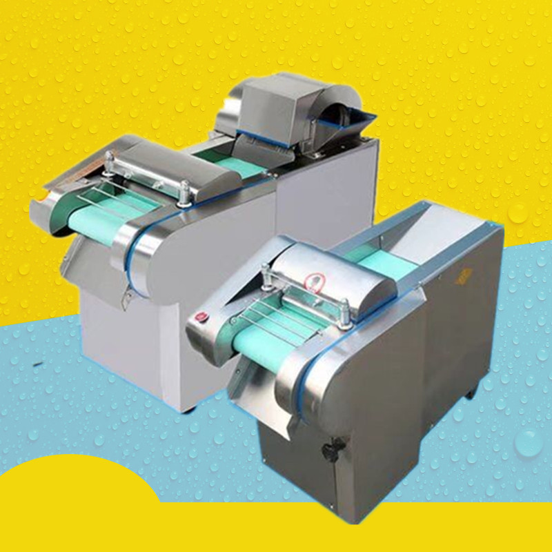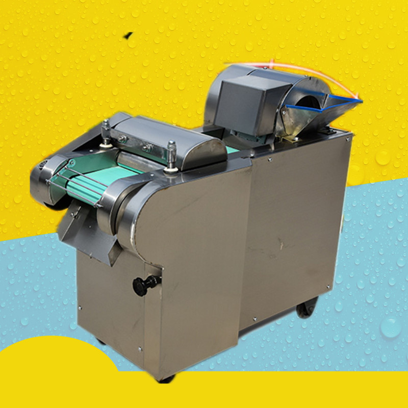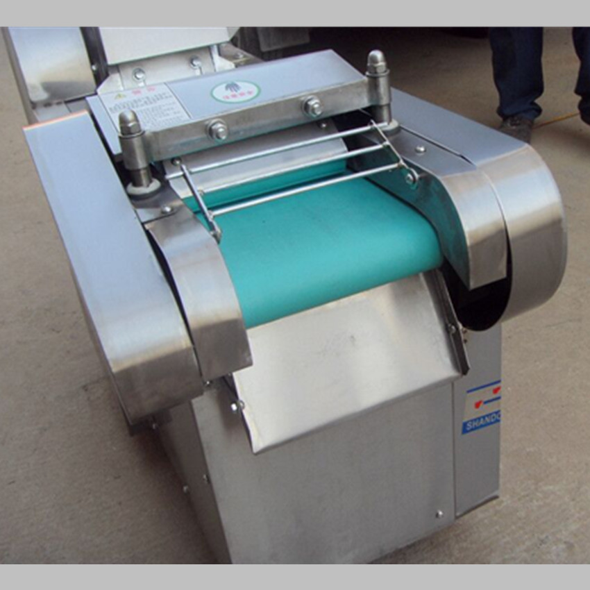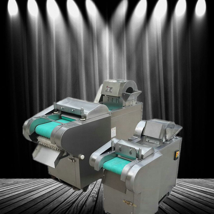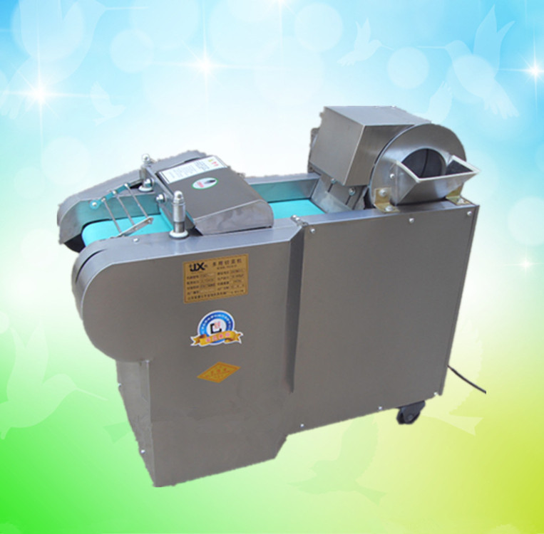 多功能型切菜机包含单切机的所有功能的同时,也可切圆形如土豆、萝卜等。 可将根、茎、叶等蔬菜加工成片、丝、丁、菱、曲线、花丁、花片等。切片装置用于硬菜(萝卜、土豆、水果、薯类)的切片,厚度在1-10毫米内自由调整;往复竖刀将刀成的菜片或软菜(韭菜、芹菜)切成直丝或段、曲线丝、方丁(或形刀)输送带每次移动距离1-20毫米自由调整。所调整量即为丝段的宽度;应注意被切菜直径较粗时(大于30毫米)出片效果才好,便于切丁,直径小时制的片或丁将会杂乱。被切菜加工面平整光滑、规则,组织完好,保持手工切制的效果。