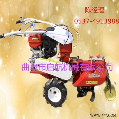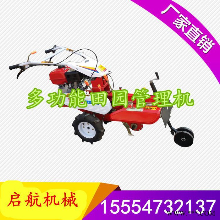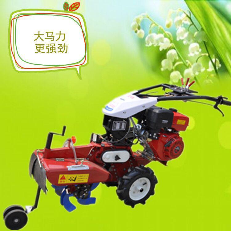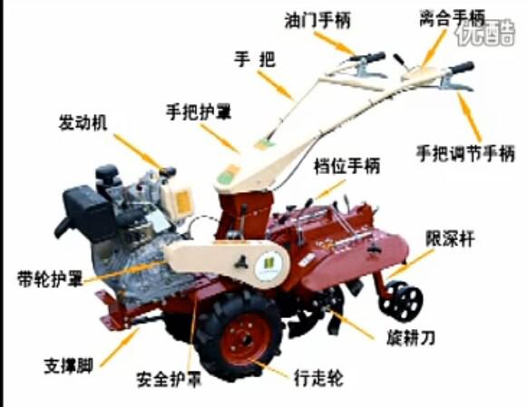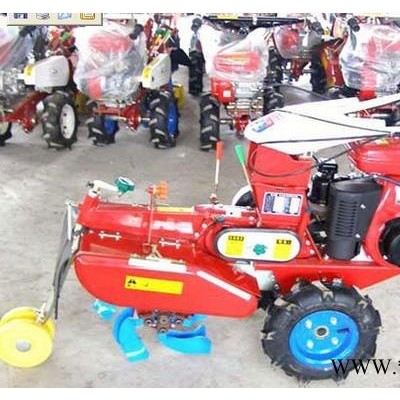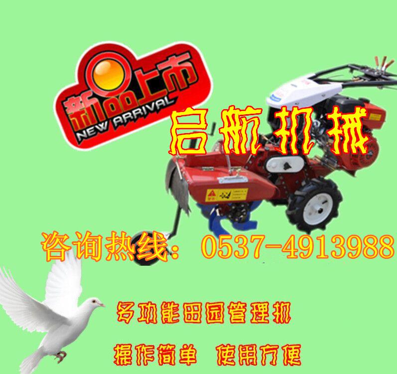 本机器包括机架、可调高低扶手,机架上设有(风冷或水冷)柴油机或汽油机、机架和扶手上设置有变速箱,变速箱的输出轴上设置有能够沿轴移动的驱动轮或链轨.传动方式主要有:全齿轮传动、皮带传动、链条传动三种传动方式.该机具有重量轻,油耗低、相对功率大,结构紧凑、机动性强、操纵轻便灵活的特点。可爬坡、越埂、阶梯性强。广泛适用于平原、山区、丘陵的旱地、水田、果园、菜地、烟地的深旋耕、浅旋耕、犁耕。配上相应机具可进行旱地旋耕、水田旋耕、抽水、开沟、喷淋、喷药除草碎土等作业,还可牵引拖车进行短途运输,是大中型农机无法**的多功能田园管理机,工作稳定可靠、使用寿命长、维修方便等特点。