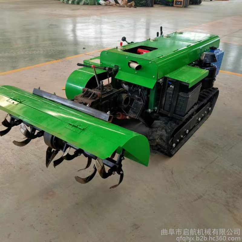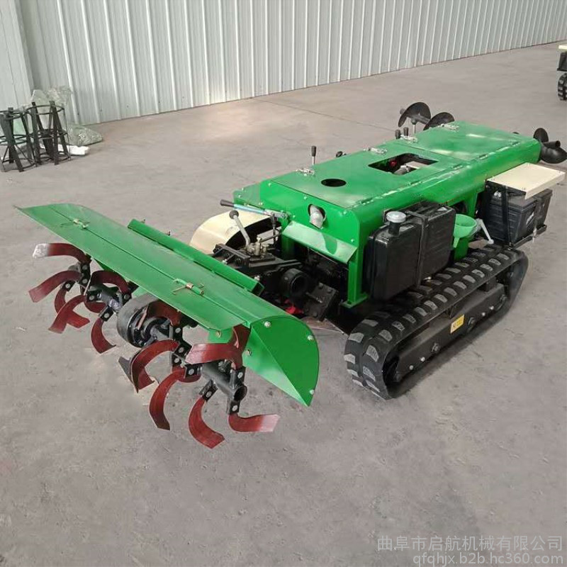 多功能 履带式开沟施肥机安装上不同的配件可以进行单独旋耕、回填、单独开沟、施肥、也可混合搭配使用。产品结实耐用,性能优越,操作方便.耐用:机身加厚,密,履带式行走,可进行原地转向。刀具都是加厚75号猛钢锻造,非常耐磨耐用,工作效率高.