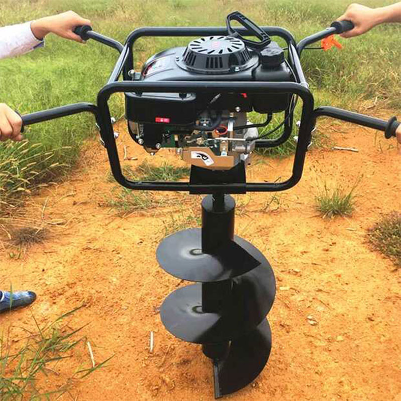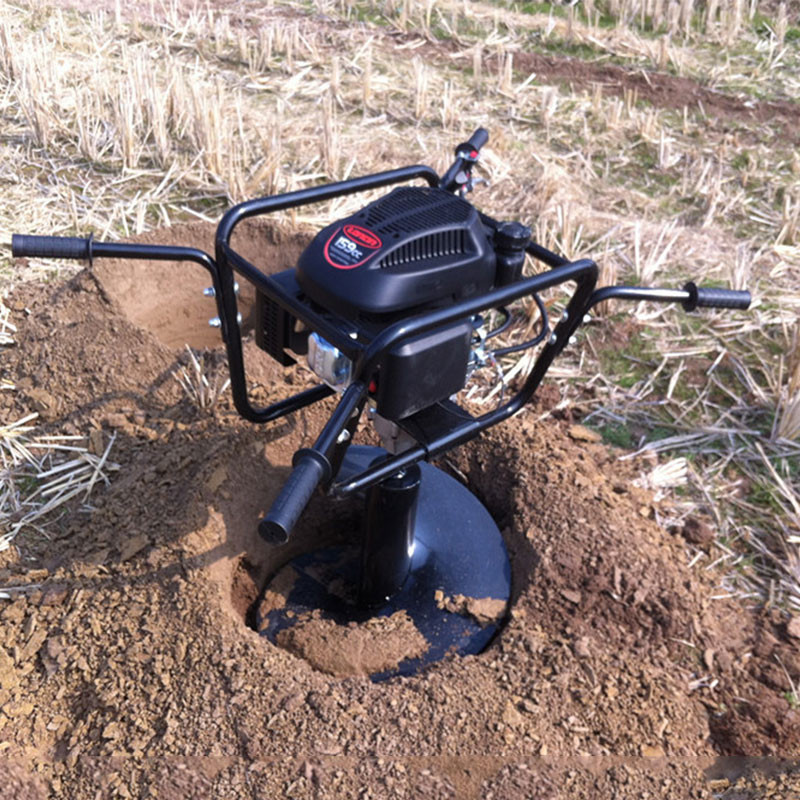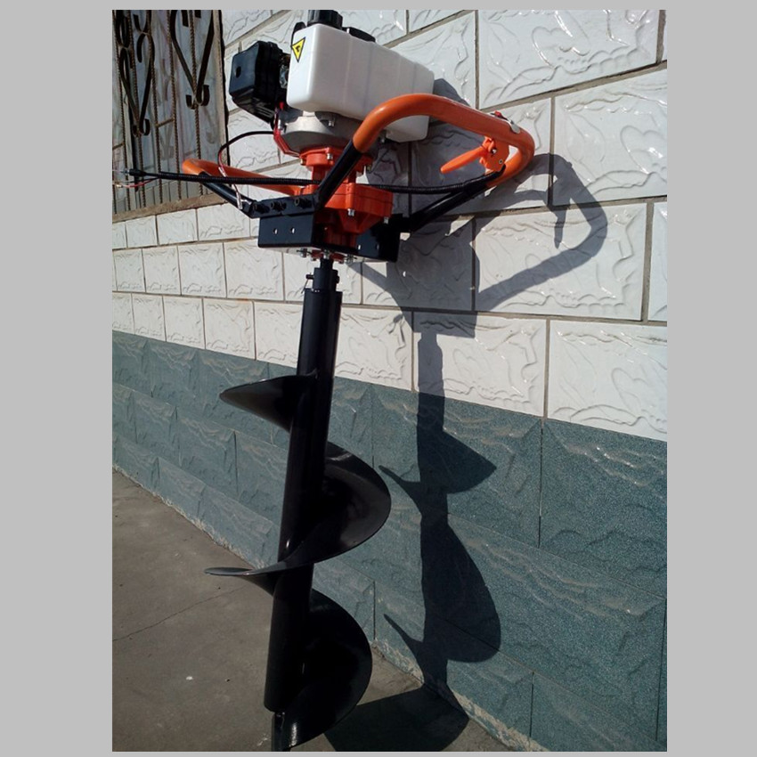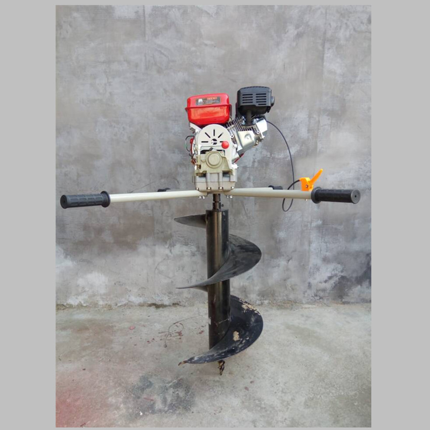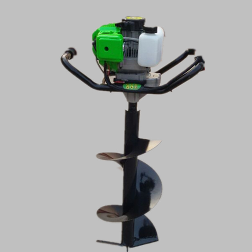 由小型通用汽油机,超越离合器,高减速比传动箱及特殊设计的钻具组成适合于<20度以下的坡地、沙地、硬质土地的植树造林或果树种植,道路两侧绿化植树等。苗木种植挖穴,畜牧围栏埋桩挖穴;葡萄胡椒种植埋桩挖穴;果树、林木施肥挖穴。挖坑直径:,200mm250 mm 300 mm 40mm。操作每小时不低于80个坑,按一天工作8小时计算,一天可以挖640个坑,是人工的30多倍。让人们从繁重的体力劳动解放出来,广泛应用于植树造林,栽种果林、篱笆、及秋季给果树施肥等。动力强劲有力,外形美观,操作舒适,劳动强度低,适合各种地形,效率高,便于携带及野外田地作业。