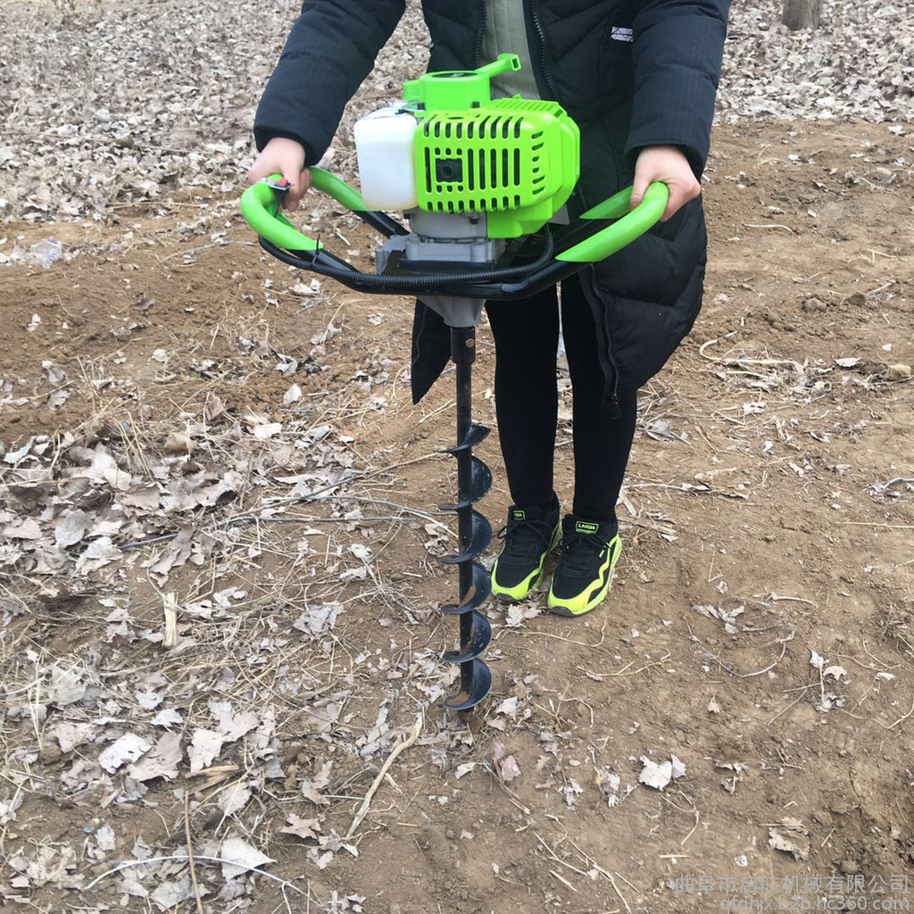 手提式挖坑机又叫便携式挖坑机,是山地,丘岭,沟壑区植树造林,施肥快速挖坑的专用机械。挖坑机让人们从繁重的体力劳动解放出来,广泛应用于植树造林,栽种果林、篱笆、及秋季给果树施肥等。其动力强劲有力,外形美观,操作舒适,劳动强度低,适合各种地形,效率高,便于携带及野外田地作业。