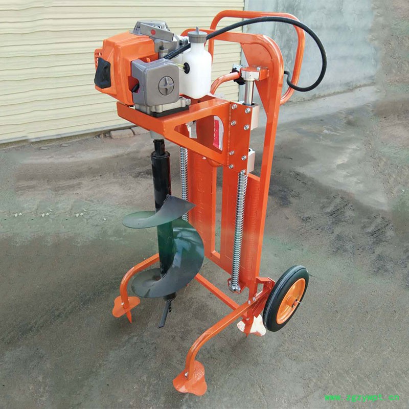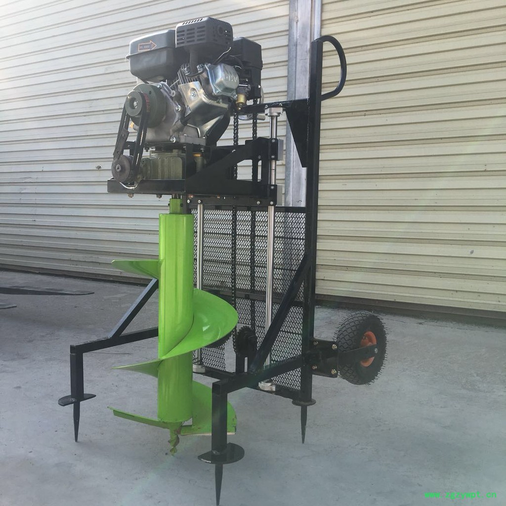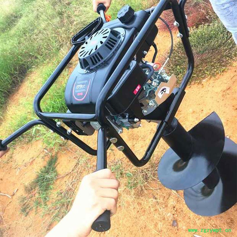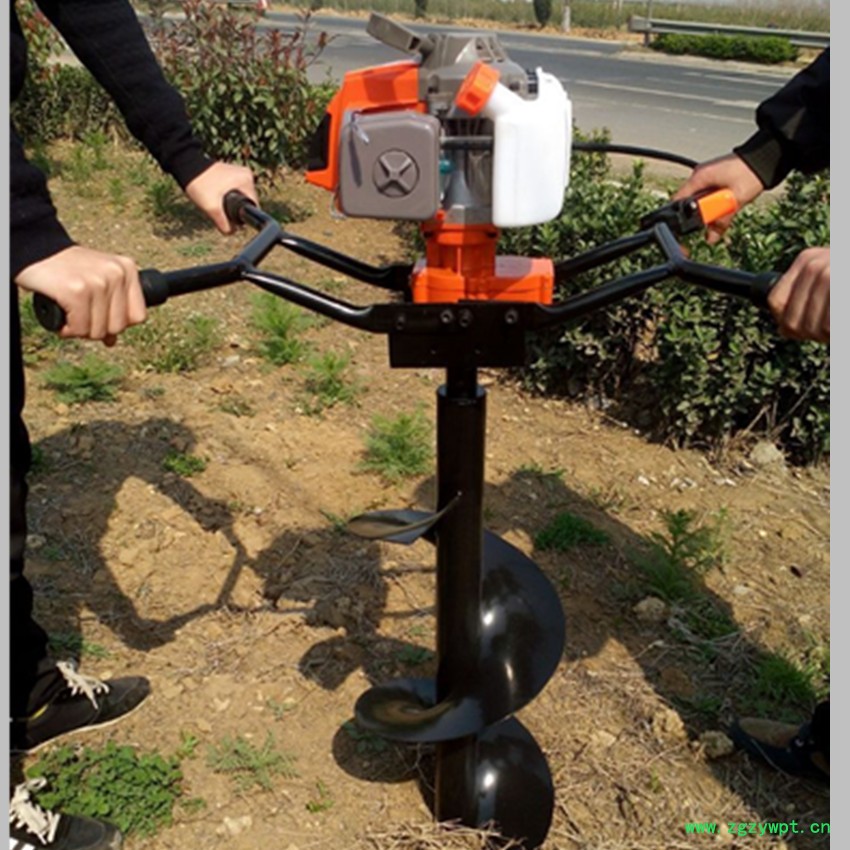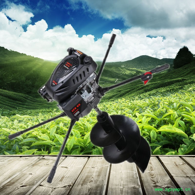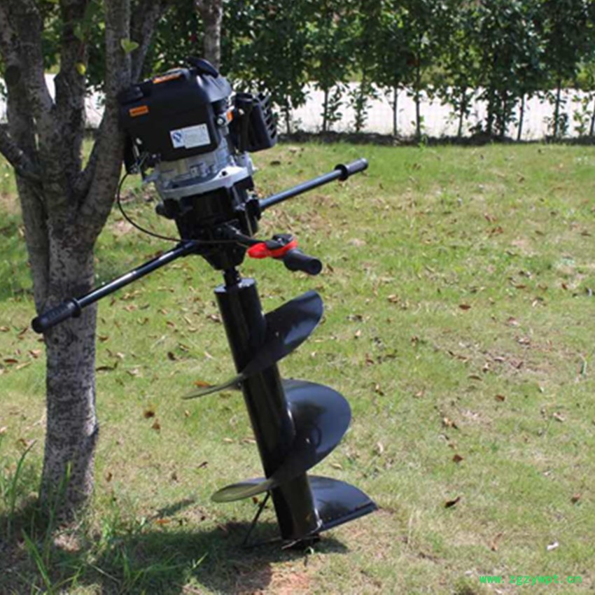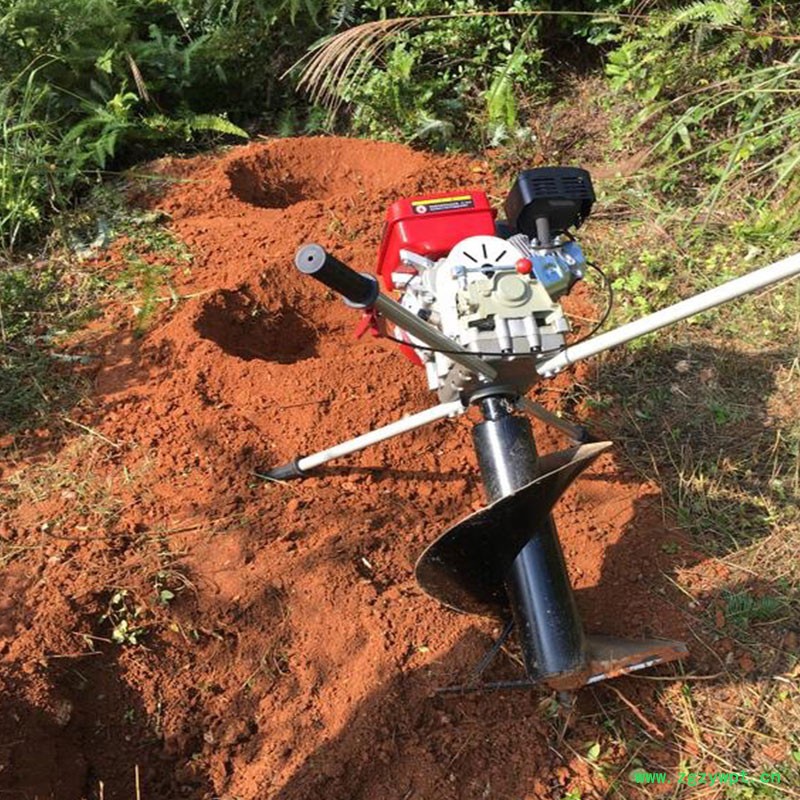 由小型通用汽油机,超越离合器,高减速比传动箱及特殊设计的钻具组成适合于<20度以下的坡地、沙地、硬质土地的植树造林或果树种植,道路两侧绿化植树等。苗木种植挖穴,畜牧围栏埋桩挖穴;葡萄胡椒种植埋桩挖穴;果树、林木施肥挖穴。挖坑直径:,200mm250 mm 300 mm 40mm。操作每小时不低于80个坑,按一天工作8小时计算,一天可以挖640个坑,是人工的30多倍。让人们从繁重的体力劳动解放出来,广泛应用于植树造林,栽种果林、篱笆、及秋季给果树施肥等。动力强劲有力,外形美观,操作舒适,劳动强度低,适合各种地形,效率高,便于携带及野外田地作业。