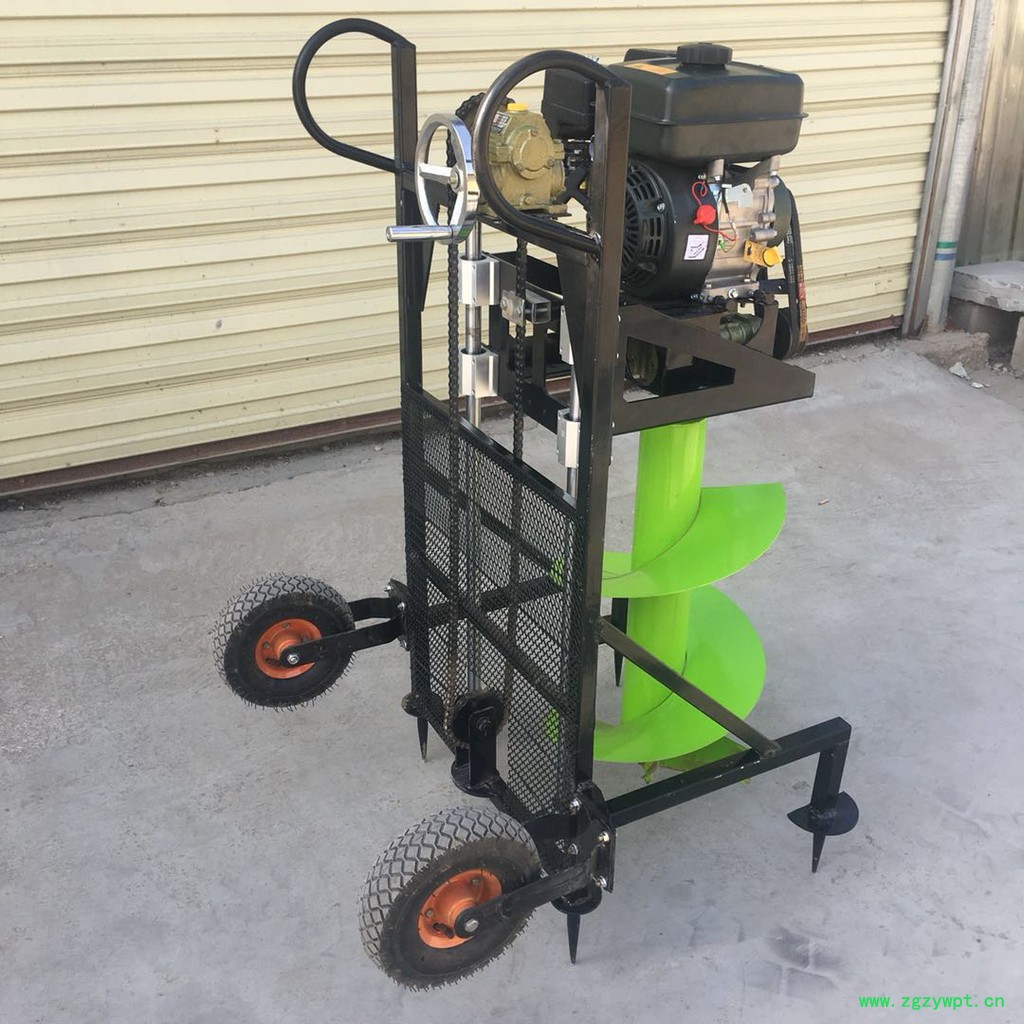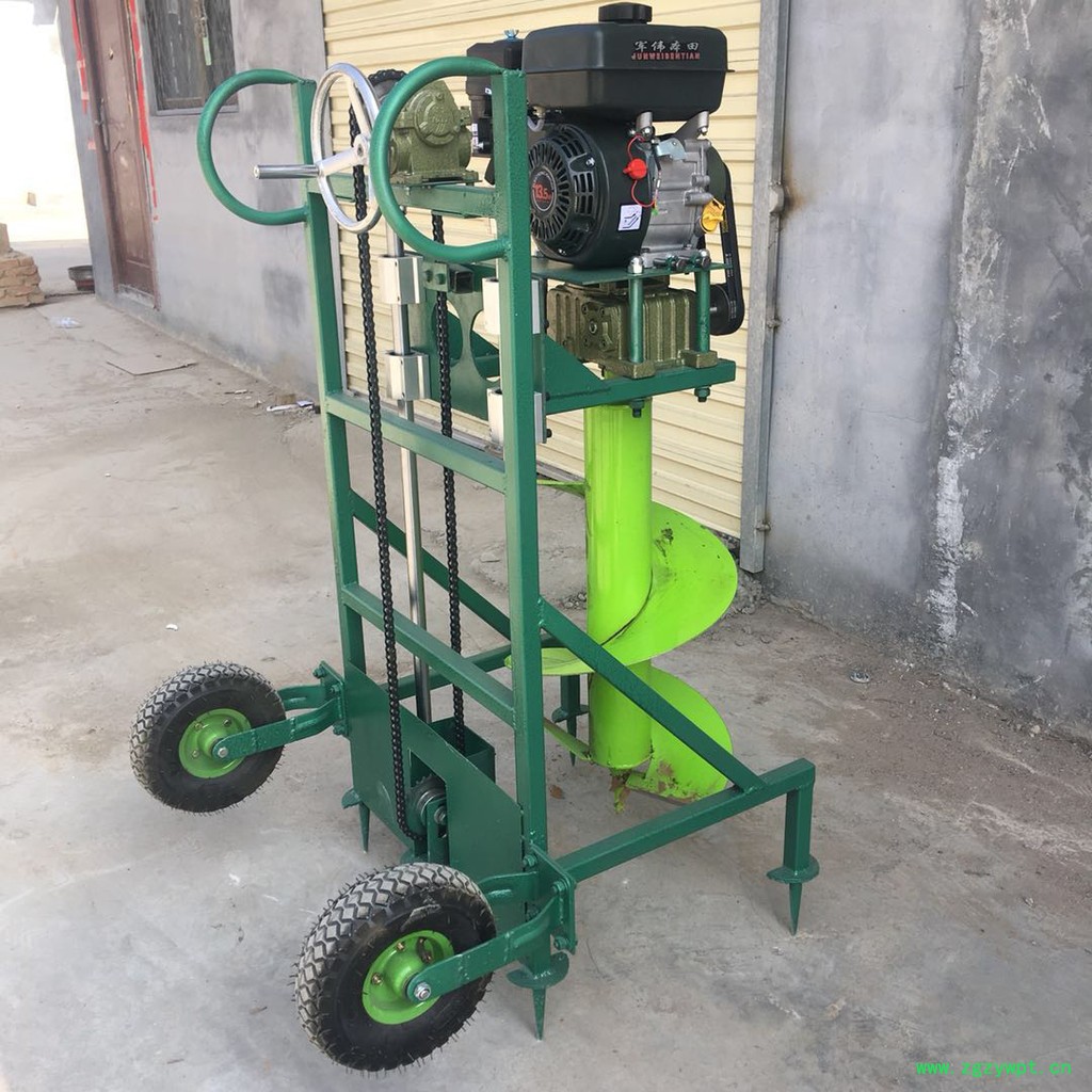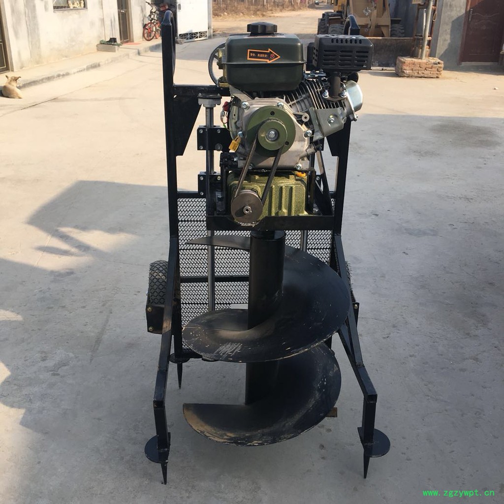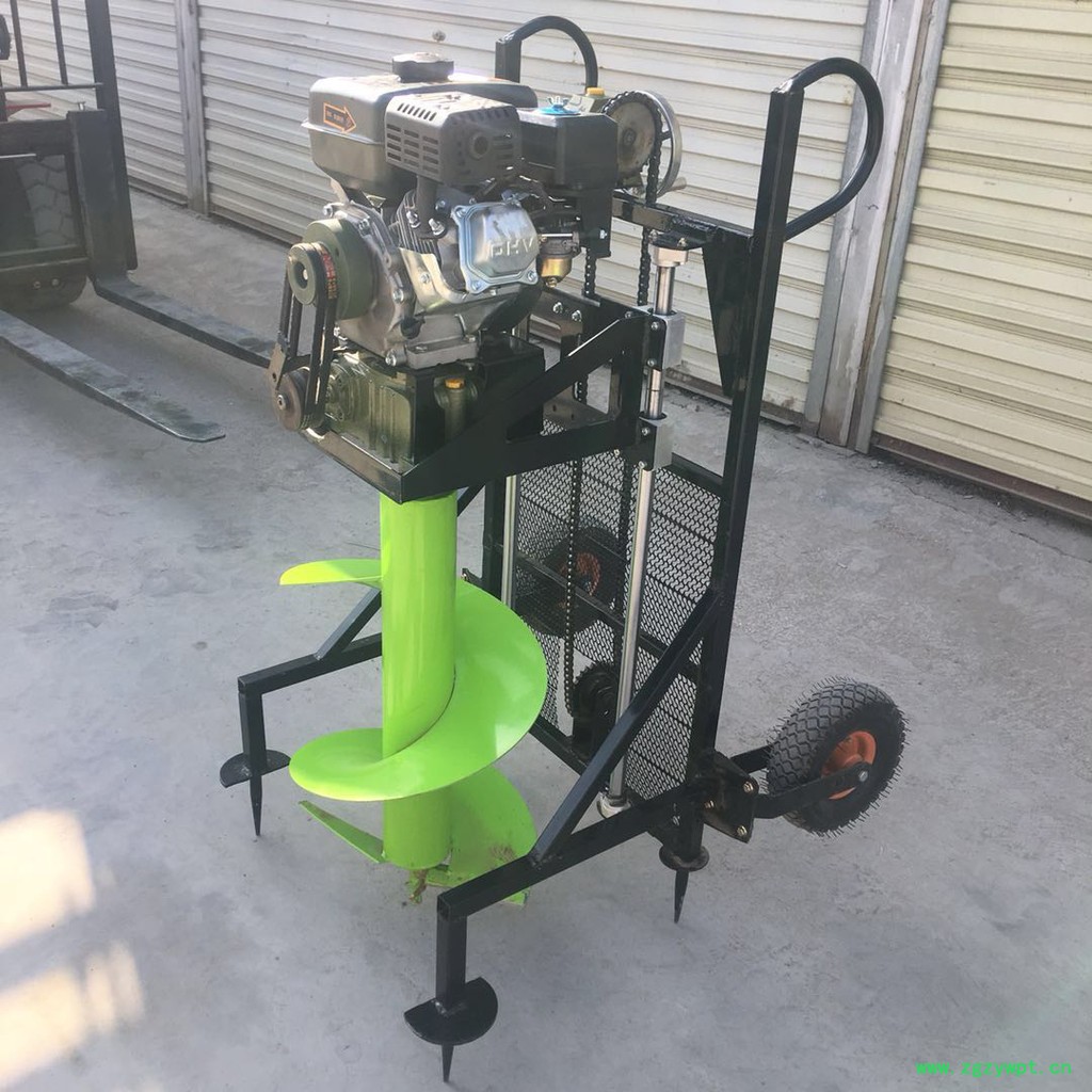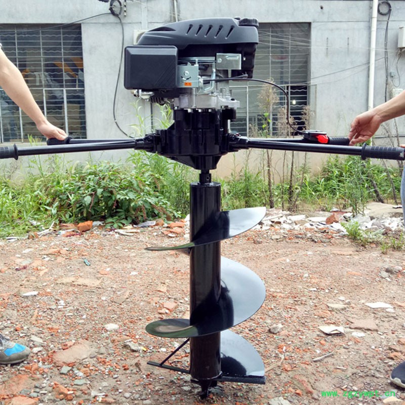 由小型通用汽油机,超越离合器,高减速比传动箱及特殊设计的钻具组成适合于<20度以下的坡地、沙地、硬质土地的植树造林或果树种植,道路两侧绿化植树等。苗木种植挖穴,畜牧围栏埋桩挖穴;葡萄胡椒种植埋桩挖穴;果树、林木施肥挖穴。挖坑直径:,200mm250 mm 300 mm 40mm。操作每小时不低于80个坑,按一天工作8小时计算,一天可以挖640个坑,是人工的30多倍。让人们从繁重的体力劳动解放出来,广泛应用于植树造林,栽种果林、篱笆、及秋季给果树施肥等。动力强劲有力,外形美观,操作舒适,劳动强度低,适合各种地形,效率高,便于携带及野外田地作业。