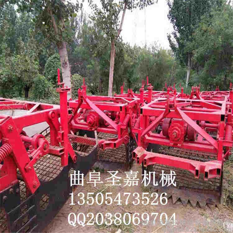 用途和适用范围: 本公司生产的药材收获机可一机多用,适合丹参、党参、黄芩、辣根、桔梗、白芷、徐长卿、三七、天花粉、板蓝根等多种根茎类、块茎类药材的收获。 本厂生产的机器,通过调换不同筛网可替代花生收获机,红薯收获机等薯类收获机使用,本机有不同的筛网选择,用户可根据当地土质及土壤干湿程度行调换筛网。 本公司可根据用户需求定做各种尺寸的机器,一定达到客户满意。 使用配套大型**拖拉机经悬挂,传动轴连接,开动机器,根据药材根茎深度调节后轮,缓慢将深铲插入土壤中。将药材根茎挖出,经振动筛振动将土筛净后,使药材传送地表面,完成采挖工作。