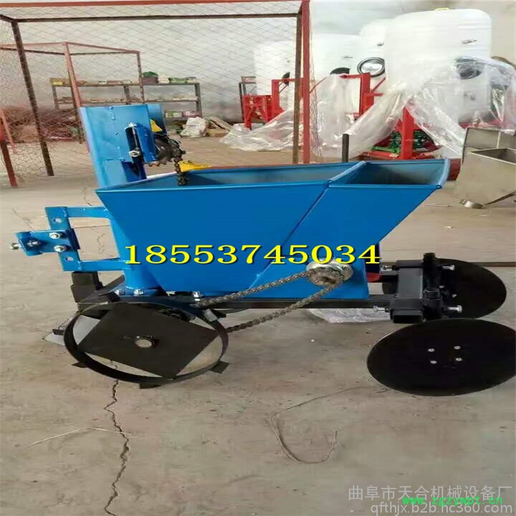 土豆播种机,又叫马铃薯播种机,番薯类种植机,是将块状的种子利用播种系统有序的种植在地下的一种种植机。马铃薯种植机可种植土豆等根茎类作物,并可同小型拖拉机配套使用,集开沟、施肥、播种和覆土为一体,可一次完成施肥、播种作业。