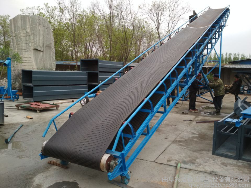 2、结构形式多样,有槽形胶带输送机、平型带式输送机、爬坡皮带式输送机、侧倾皮带输送机、转弯皮带输输机等多种形式,输送带上还可增设推板、侧挡板、裙边等附件,能满足各种工艺要求。