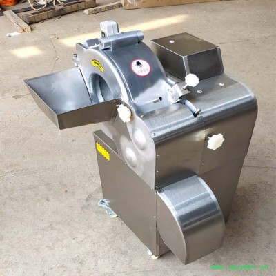 包含单切机的所以功能的同时,也可切圆形如土豆、萝卜等。可将根、茎、叶等蔬菜加工成片、丝、丁、菱、曲线、花丁、花片等。切片装置用于硬菜(萝卜、土豆、水果、薯类)的切片,厚度在1-10毫米内自由调整;往复竖刀将刀成的菜片或软菜(韭菜、芹菜)切成直丝或段、曲线丝、方丁(或形刀)输送带每次移动距离1-20毫米自由调整。所调整量即为丝段的宽度;应注意被切菜直径较粗时(大于30毫米)出片效果才好,便于切丁,直径小时制的片或丁将会杂乱。被切菜加工面平整光滑、规则,组织完好,保持手工切制的效果。