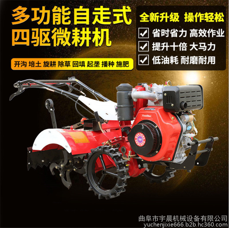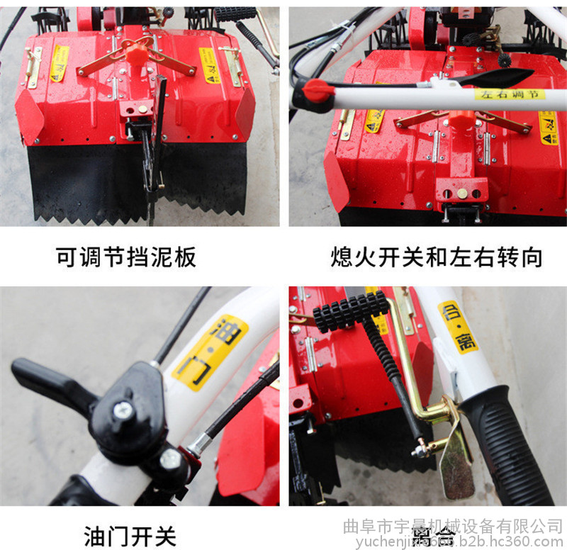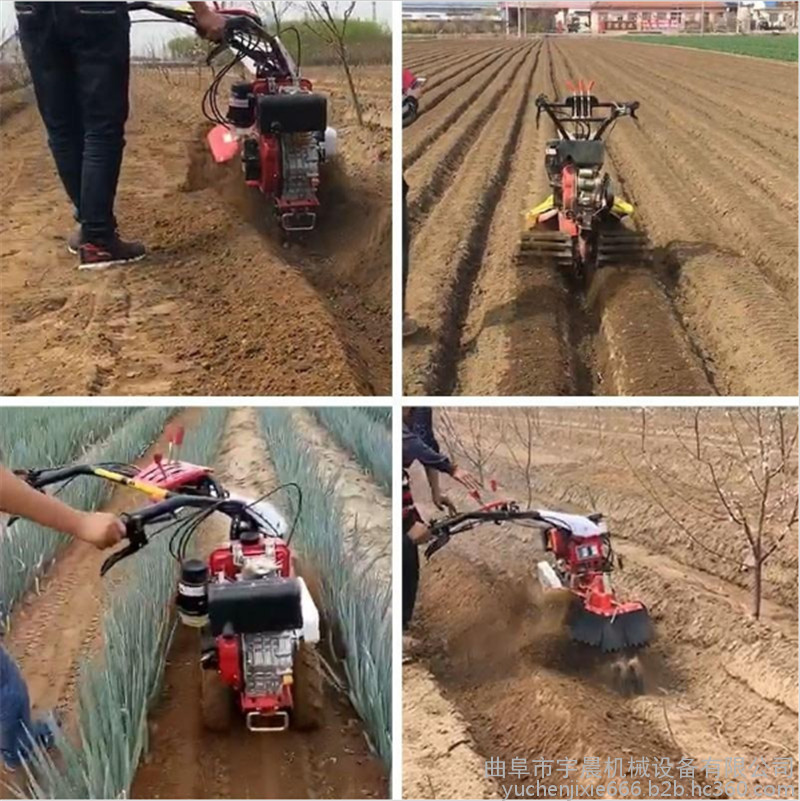 本机安装上不同的配件可以开沟、起垄、培土、除草、施肥、 开深沟、施底肥、埋葡萄藤、扶垄等,与其他单一功能的田园管理机是不同的。