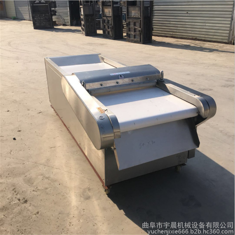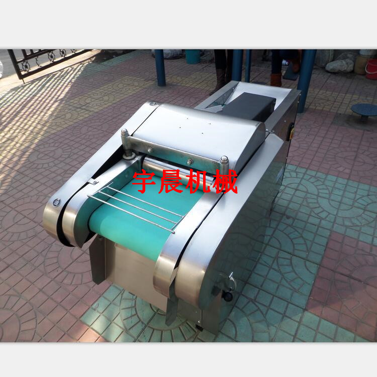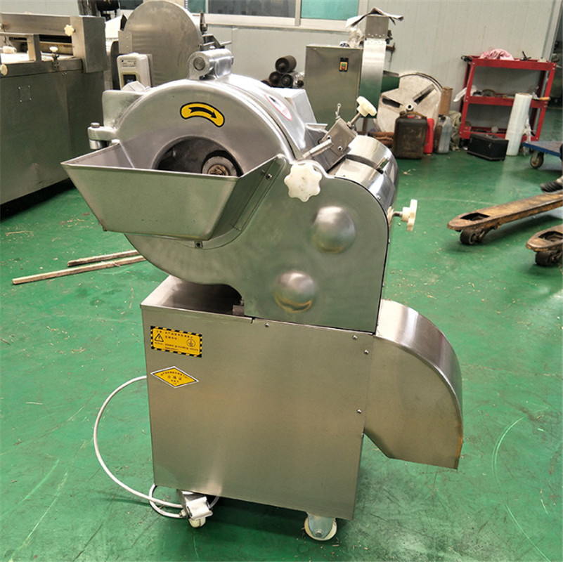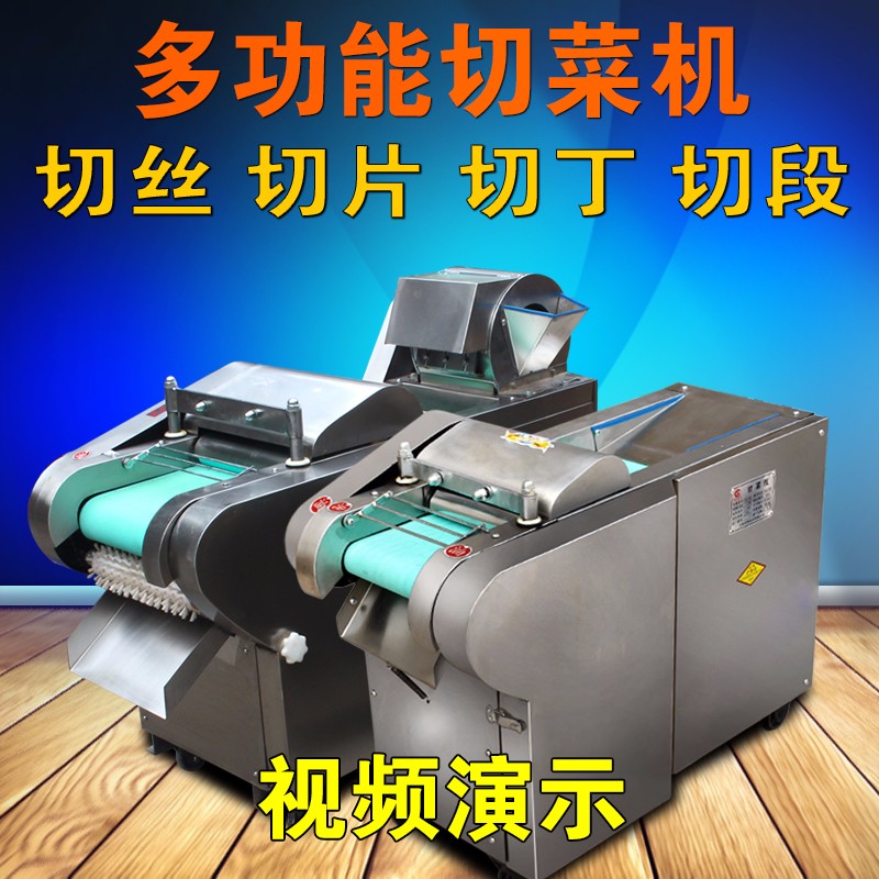 包含单切机的所以功能的同时,也可切圆形如土豆、萝卜等。可将根、茎、叶等蔬菜加工成片、丝、丁、菱、曲线、花丁、花片等。切片装置用于硬菜(萝卜、土豆、水果、薯类)的切片,厚度在1-10毫米内自由调整;往复竖刀将刀成的菜片或软菜(韭菜、芹菜)切成直丝或段、曲线丝、方丁(或形刀)输送带每次移动距离1-20毫米自由调整。所调整量即为丝段的宽度;应注意被切菜直径较粗时(大于30毫米)出片效果才好,便于切丁,直径小时制的片或丁将会杂乱。被切菜加工面平整光滑、规则,组织完好,保持手工切制的效果。