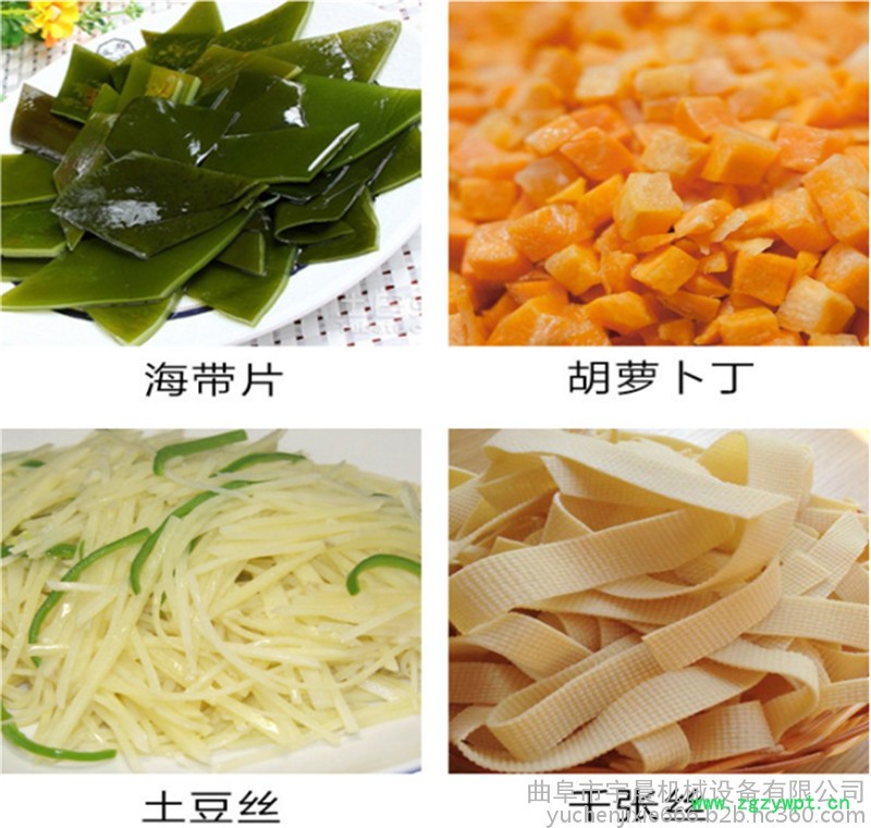 2、本机适用于硬、软各种根、茎、叶类蔬菜和海带的加工,可切制成片、块、丝、丁、菱形、曲线形多种花样。离心切片厚度2-10毫米可调