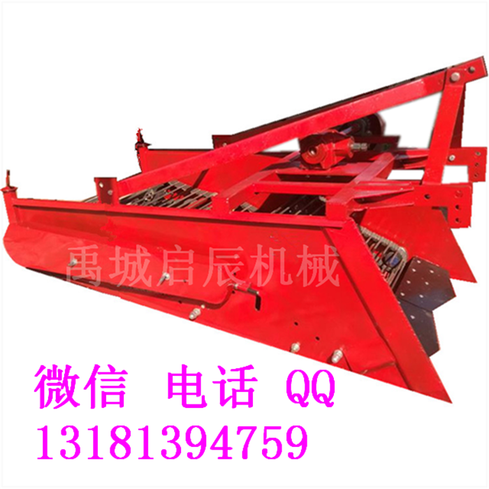 该机配有专用收获机传送带,大大增加了使用寿命,专用的铸铁齿轮箱,使机器运行更加平稳。该机配有双层振动筛土装置及前轮拨动轮装置,分离效果好,适应性强。收净率高,破坏率低,成本回收快。
