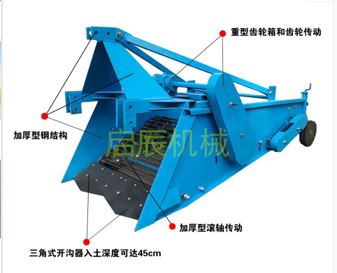本产品性能好,效率高。主要用于收获当归、黄芪、板蓝根等深层地下根茎农作物。具有收获效率高、破坏率低、运转轻快无振动、不堵草、漏土快、使用寿命长等特点。