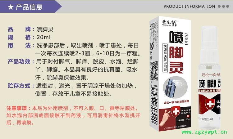 本公司供应足部护理荣足堂荣足堂 喷脚灵 OEM 止汗,祛臭,抗菌消炎 3年 通用,质量保证,欢迎咨询洽谈。