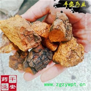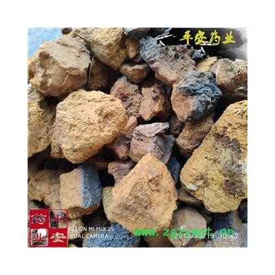【性 状】不规则块状,表面坚硬,黄褐色至黑色,有明显凹凸不平开裂的小块。菌肉黄褐色,菌丝为二系菌丝系统。生殖菌丝淡黄色,有隔